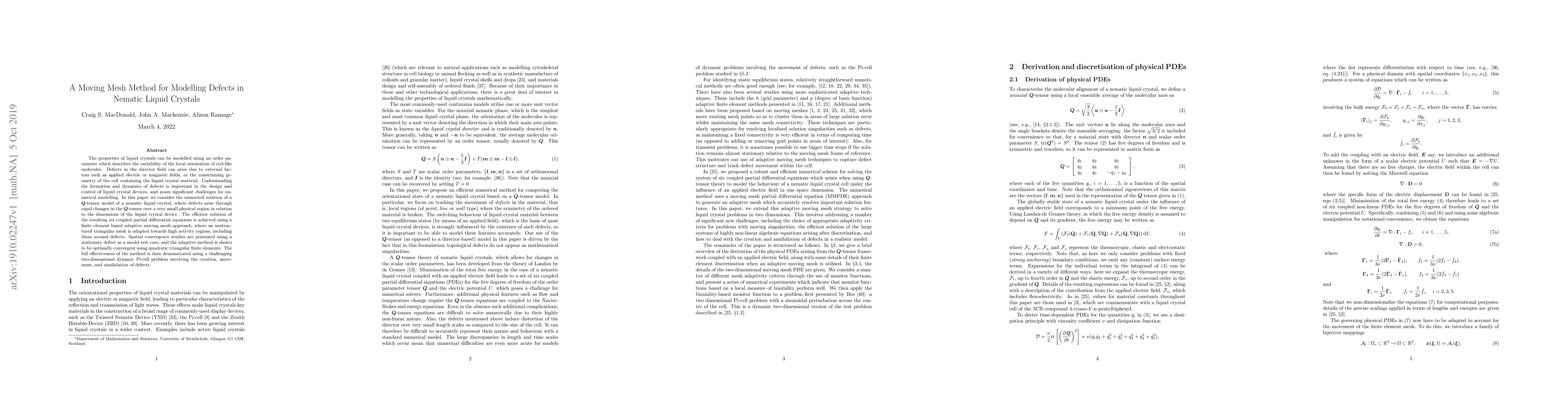 This paper proposes an adaptive moving mesh method for numerically solving the $\bf{Q}$-tensor model of nematic liquid crystals, focusing on accurately capturing defects. The method demonstrates optimal convergence and effectively models dynamic defect behavior in a complex two-dimensional problem.