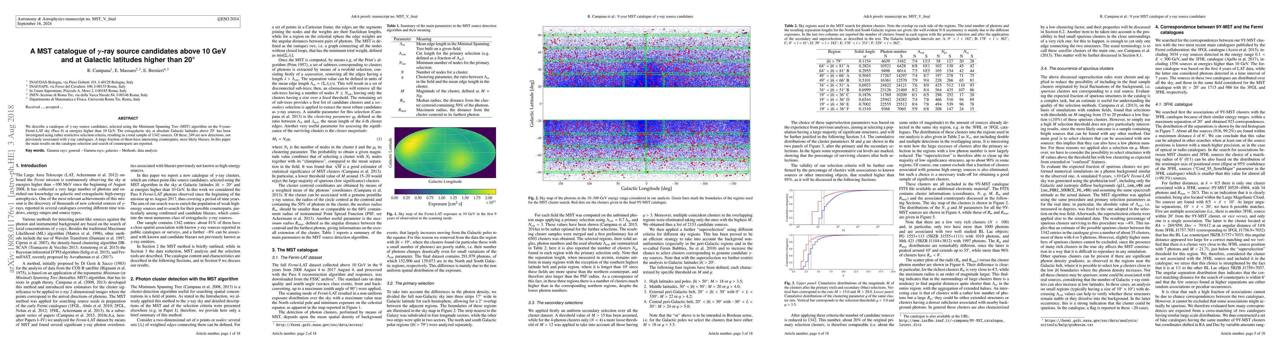 We describe a catalogue of gamma-ray source candidates, selected using the Minimum Spanning Tree (MST) algorithm on the 9-years Fermi-LAT sky (Pass 8) at energies higher than 10 GeV. The extragalactic sky at absolute Galactic latitudes above 20 degrees has been investigated using rather restrictive selection criteria, resulting in a total sample of 1342 sources. Of these, 249 are new detections, not previously associated with gamma-ray catalogues. A large fraction of them have interesting counterparts, most likely blazars. In this paper the main results on the catalogue selection and search of counterparts are reported.