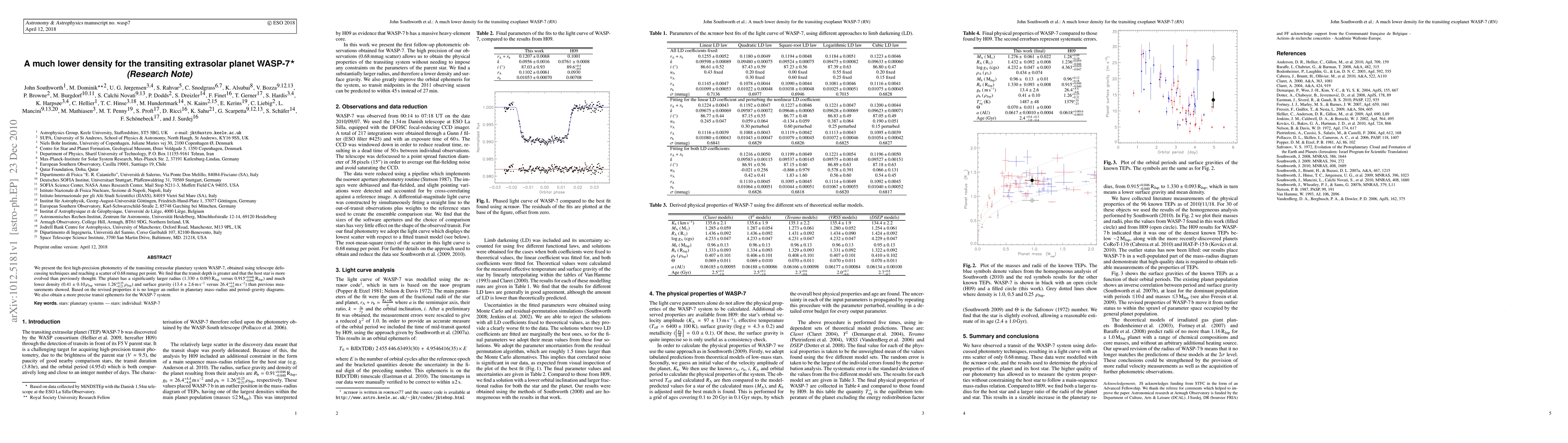 We present the first high-precision photometry of the transiting extrasolar planetary system WASP-7, obtained using telescope defocussing techniques and reaching a scatter of 0.68 mmag per point. We find that the transit depth is greater and that the host star is more evolved than previously thought. The planet has a significantly larger radius (1.330 +/- 0.093 Rjup versus 0.915 +0.046 -0.040 Rjup) and much lower density (0.41 +/- 0.10 rhojup versus 1.26 +0.25 -0.21 rhojup) and surface gravity (13.4 +/- 2.6 m/s2 versus 26.4 +4.4 -4.0 m/s2) than previous measurements showed. Based on the revised properties it is no longer an outlier in planetary mass--radius and period--gravity diagrams. We also obtain a more precise transit ephemeris for the WASP-7 system.