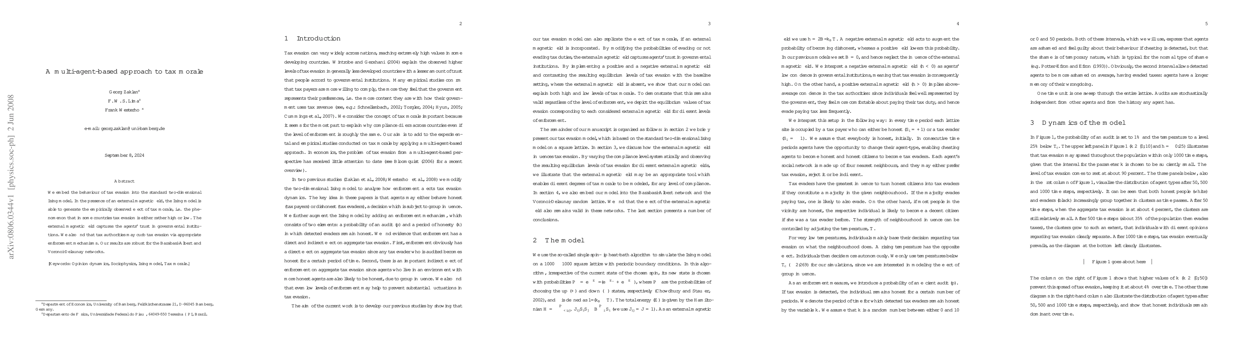 This paper uses a multi-agent Ising model to simulate tax evasion behavior, showing that tax morale varies based on agents' trust in institutions. Effective enforcement mechanisms can reduce tax evasion, with results holding across different network structures.