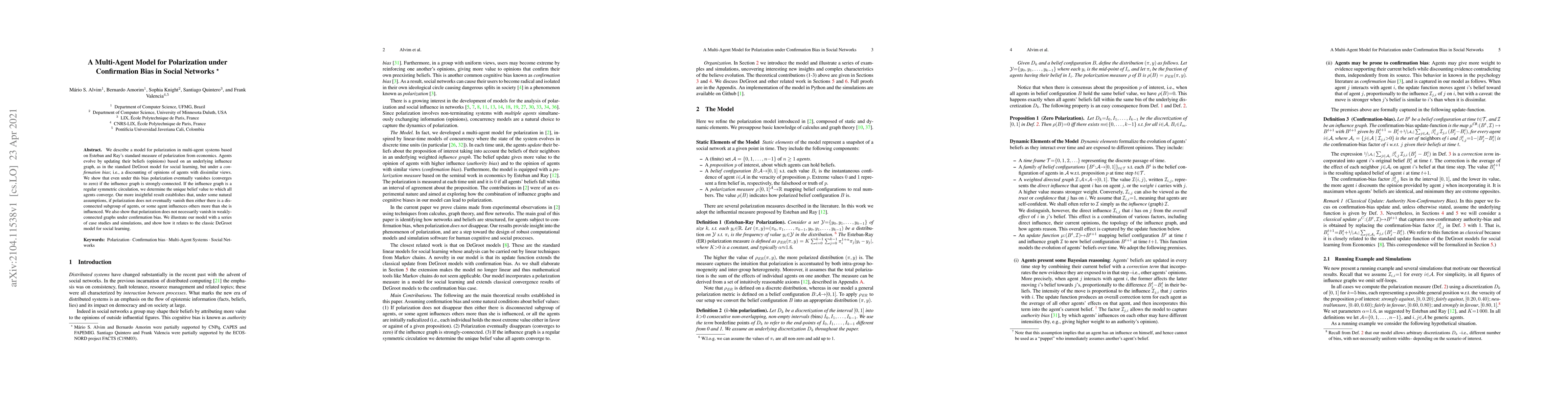 A model shows that polarization in social networks under confirmation bias converges to zero if the influence graph is strongly-connected, but can persist in weakly-connected graphs or if a subgroup of agents is disconnected.