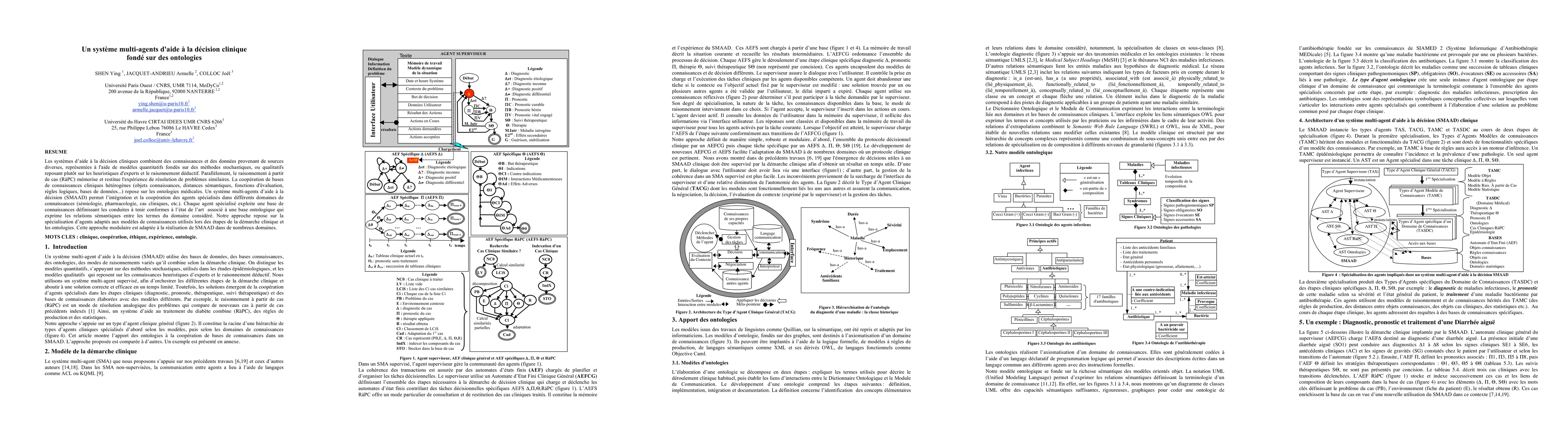Clinical decision support systems combine knowledge and data from a variety of sources, represented by quantitative models based on stochastic methods, or qualitative based rather on expert heuristics and deductive reasoning. At the same time, case-based reasoning (CBR) memorizes and returns the experience of solving similar problems. The cooperation of heterogeneous clinical knowledge bases (knowledge objects, semantic distances, evaluation functions, logical rules, databases...) is based on medical ontologies. A multi-agent decision support system (MADSS) enables the integration and cooperation of agents specialized in different fields of knowledge (semiology, pharmacology, clinical cases, etc.). Each specialist agent operates a knowledge base defining the conduct to be maintained in conformity with the state of the art associated with an ontological basis that expresses the semantic relationships between the terms of the domain in question. Our approach is based on the specialization of agents adapted to the knowledge models used during the clinical steps and ontologies. This modular approach is suitable for the realization of MADSS in many areas.