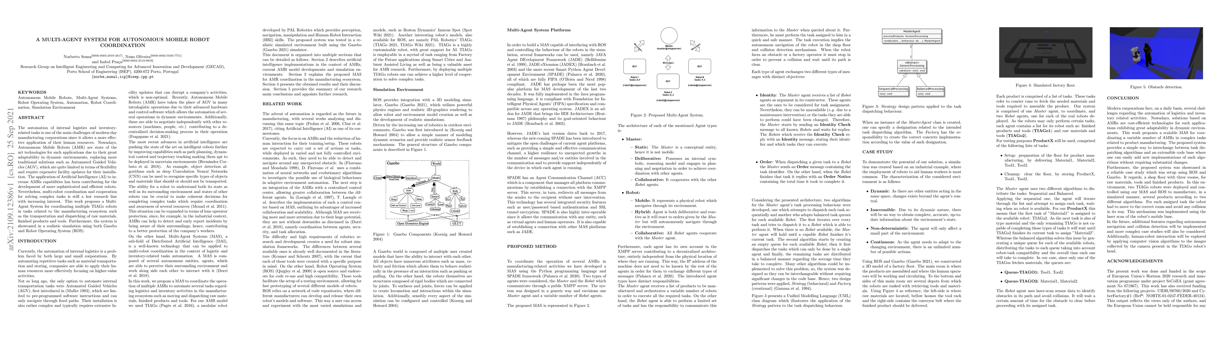 This paper proposes a Multi-Agent System to coordinate multiple TIAGo Autonomous Mobile Robots for dynamic logistics tasks in manufacturing. The system leverages AI for enhanced robot capabilities and is demonstrated through simulation using Gazebo and ROS.