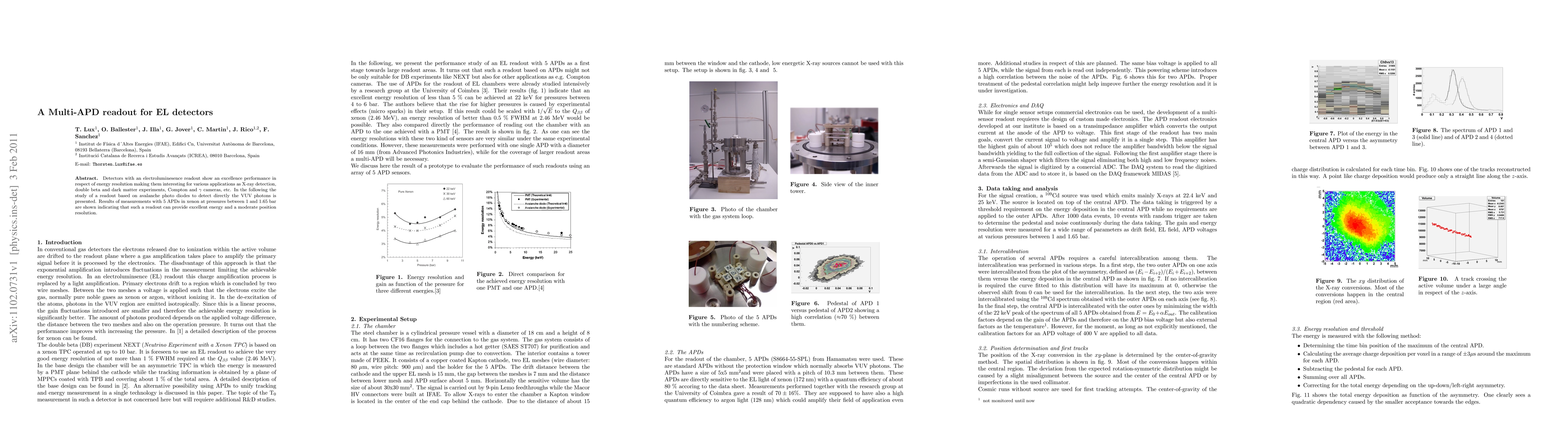Detectors with an electroluminesence readout show an excellence performance in respect of energy resolution making them interesting for various applications as X-ray detection, double beta and dark matter experiments, Compton and gamma cameras, etc. In the following the study of a readout based on avalanche photo diodes to detect directly the VUV photons is presented. Results of measurements with 5 APDs in xenon at pressures between 1 and 1.65 bar are shown indicating that such a readout can provide excellent energy and a moderate position resolution.