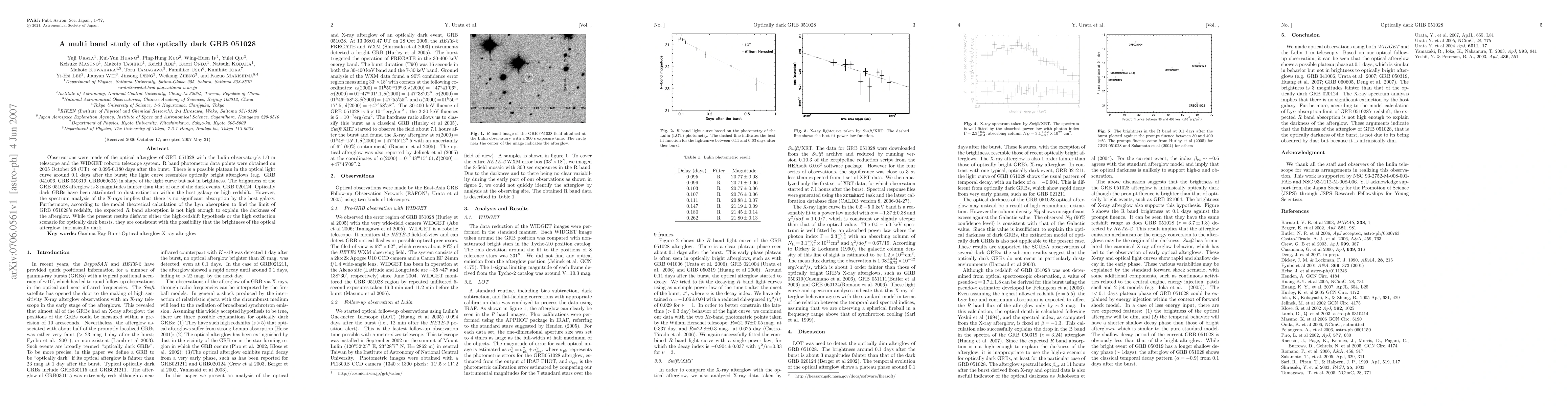 This study observes the optical afterglow of the dark GRB 051028, finding a faint light curve with a possible plateau, similar in shape to brighter afterglows but significantly dimmer. The analysis rules out high-redshift and significant dust extinction as causes for its darkness, suggesting intrinsic faintness.