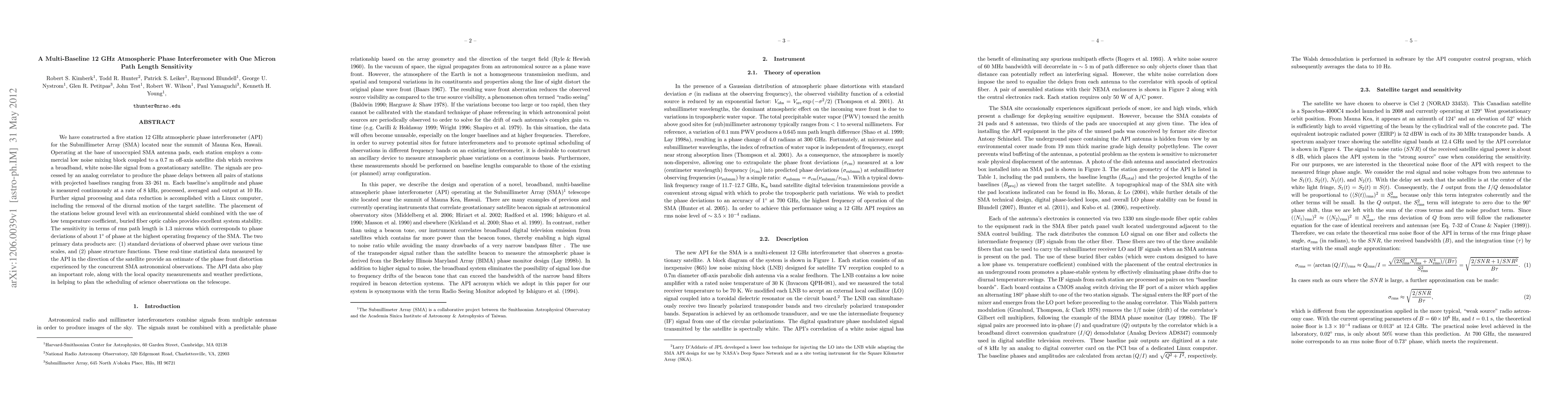 We have constructed a five station 12 GHz atmospheric phase interferometer (API) for the Submillimeter Array (SMA) located near the summit of Mauna Kea, Hawaii. Operating at the base of unoccupied SMA antenna pads, each station employs a commercial low noise mixing block coupled to a 0.7 m off-axis satellite dish which receives a broadband, white noise-like signal from a geostationary satellite. The signals are processed by an analog correlator to produce the phase delays between all pairs of stations with projected baselines ranging from 33 to 261 m. Each baseline's amplitude and phase is measured continuously at a rate of 8 kHz, processed, averaged and output at 10 Hz. Further signal processing and data reduction is accomplished with a Linux computer, including the removal of the diurnal motion of the target satellite. The placement of the stations below ground level with an environmental shield combined with the use of low temperature coefficient, buried fiber optic cables provides excellent system stability. The sensitivity in terms of rms path length is 1.3 microns which corresponds to phase deviations of about 1 degree of phase at the highest operating frequency of the SMA. The two primary data products are: (1) standard deviations of observed phase over various time scales, and (2) phase structure functions. These real-time statistical data measured by the API in the direction of the satellite provide an estimate of the phase front distortion experienced by the concurrent SMA astronomical observations. The API data also play an important role, along with the local opacity measurements and weather predictions, in helping to plan the scheduling of science observations on the telescope.