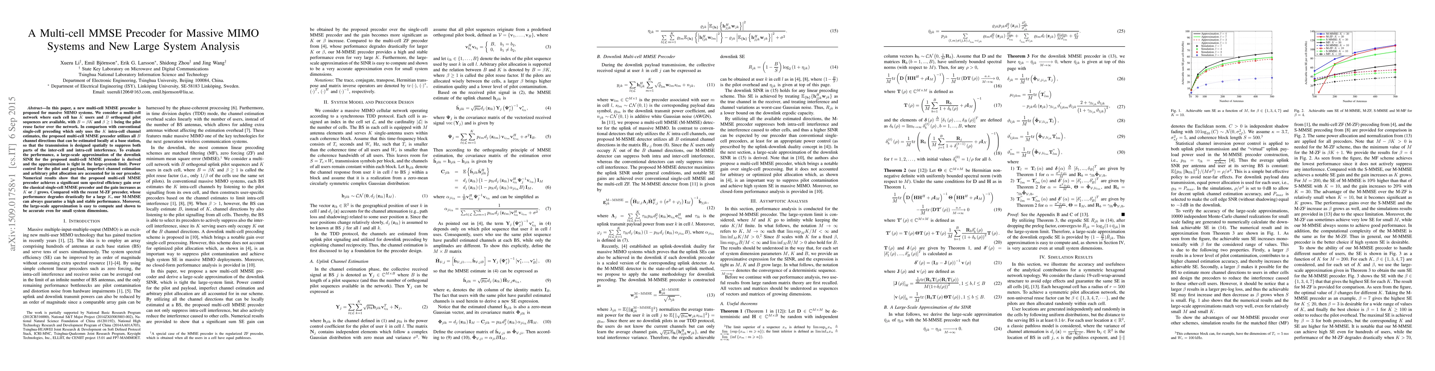 In this paper, a new multi-cell MMSE precoder is proposed for massive MIMO systems. We consider a multi-cell network where each cell has $K$ users and $B$ orthogonal pilot sequences are available, with $B = \beta K$ and $\beta \ge 1$ being the pilot reuse factor over the network. In comparison with conventional single-cell precoding which only uses the $K$ intra-cell channel estimates, the proposed multi-cell MMSE precoder utilizes all $B$ channel directions that can be estimated locally at a base station, so that the transmission is designed spatially to suppress both parts of the inter-cell and intra-cell interference. To evaluate the performance, a large-scale approximation of the downlink SINR for the proposed multi-cell MMSE precoder is derived and the approximation is tight in the large-system limit. Power control for the pilot and payload, imperfect channel estimation and arbitrary pilot allocation are accounted for in our precoder. Numerical results show that the proposed multi-cell MMSE precoder achieves a significant sum spectral efficiency gain over the classical single-cell MMSE precoder and the gain increases as $K$ or $\beta$ grows. Compared with the recent M-ZF precoder, whose performance degrades drastically for a large $K$, our M-MMSE can always guarantee a high and stable performance. Moreover, the large-scale approximation is easy to compute and shown to be accurate even for small system dimensions.