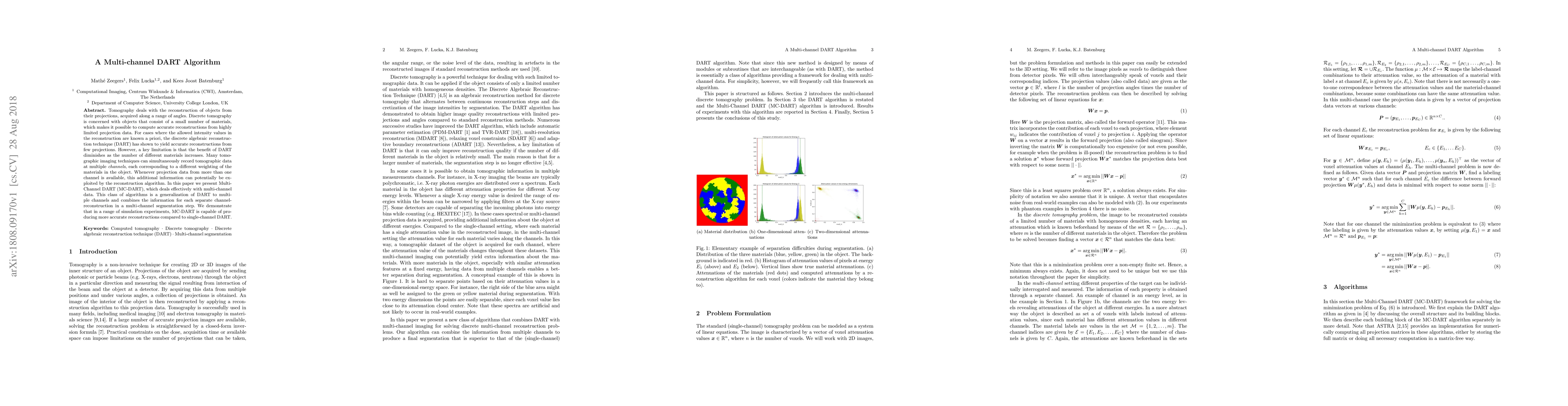 Tomography deals with the reconstruction of objects from their projections, acquired along a range of angles. Discrete tomography is concerned with objects that consist of a small number of materials, which makes it possible to compute accurate reconstructions from highly limited projection data. For cases where the allowed intensity values in the reconstruction are known a priori, the discrete algebraic reconstruction technique (DART) has shown to yield accurate reconstructions from few projections. However, a key limitation is that the benefit of DART diminishes as the number of different materials increases. Many tomographic imaging techniques can simultaneously record tomographic data at multiple channels, each corresponding to a different weighting of the materials in the object. Whenever projection data from more than one channel is available, this additional information can potentially be exploited by the reconstruction algorithm. In this paper we present Multi-Channel DART (MC-DART), which deals effectively with multi-channel data. This class of algorithms is a generalization of DART to multiple channels and combines the information for each separate channel-reconstruction in a multi-channel segmentation step. We demonstrate that in a range of simulation experiments, MC-DART is capable of producing more accurate reconstructions compared to single-channel DART.