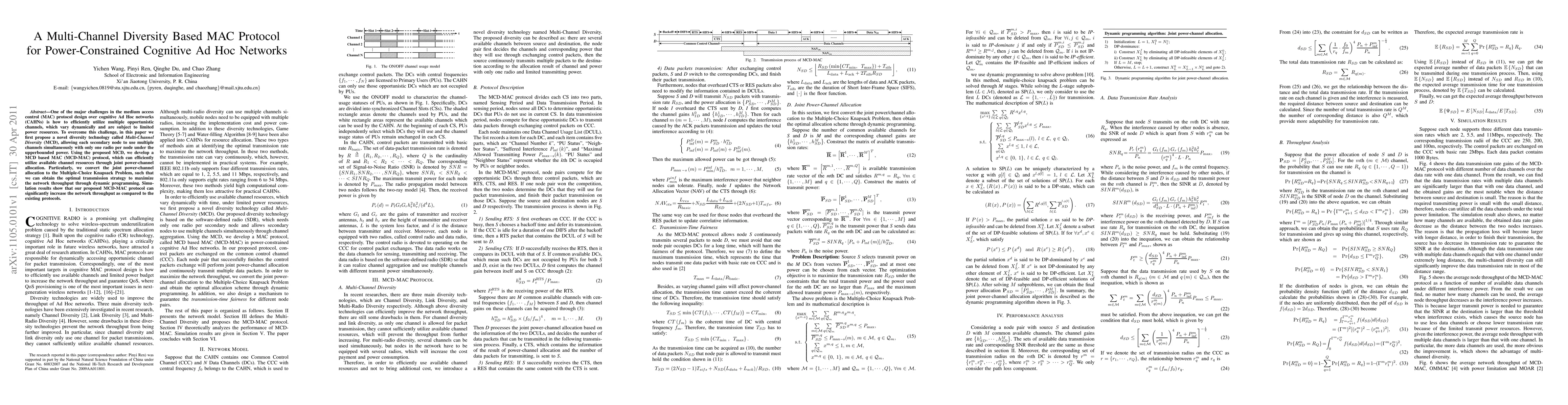 This paper proposes a novel Multi-Channel Diversity (MCD) technology to efficiently utilize multiple dynamic channels in power-constrained cognitive Ad Hoc networks. The developed MCD-MAC protocol maximizes network throughput using optimal joint power-channel allocation, significantly outperforming existing protocols.