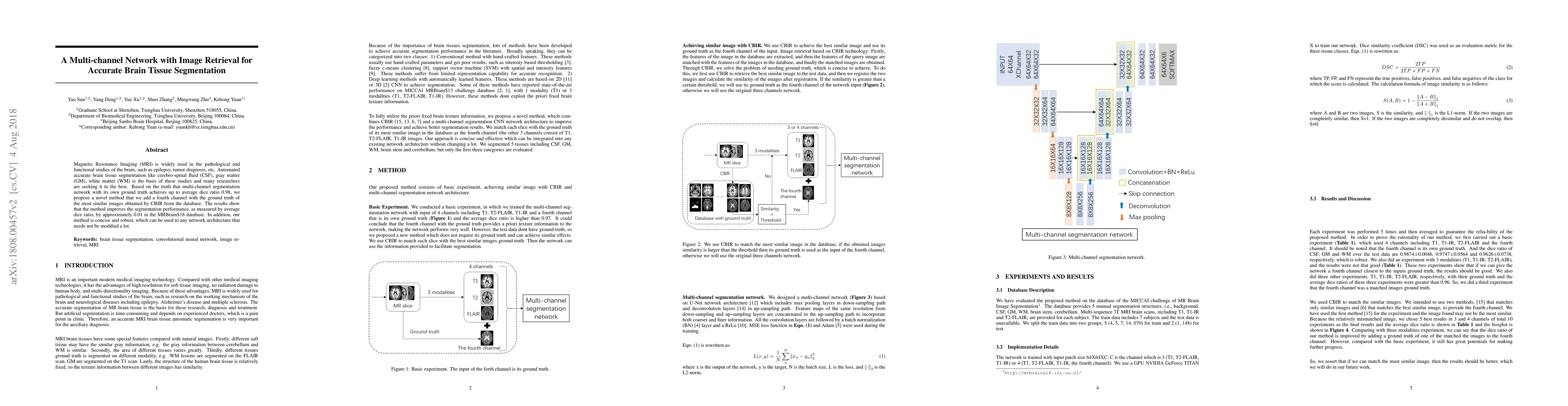 Magnetic Resonance Imaging (MRI) is widely used in the pathological and functional studies of the brain, such as epilepsy, tumor diagnosis, etc. Automated accurate brain tissue segmentation like cerebro-spinal fluid (CSF), gray matter (GM), white matter (WM) is the basis of these studies and many researchers are seeking it to the best. Based on the truth that multi-channel segmentation network with its own ground truth achieves up to average dice ratio 0.98, we propose a novel method that we add a fourth channel with the ground truth of the most similar image's obtained by CBIR from the database. The results show that the method improves the segmentation performance, as measured by average dice ratio, by approximately 0.01 in the MRBrainS18 database. In addition, our method is concise and robust, which can be used to any network architecture that needs not be modified a lot.