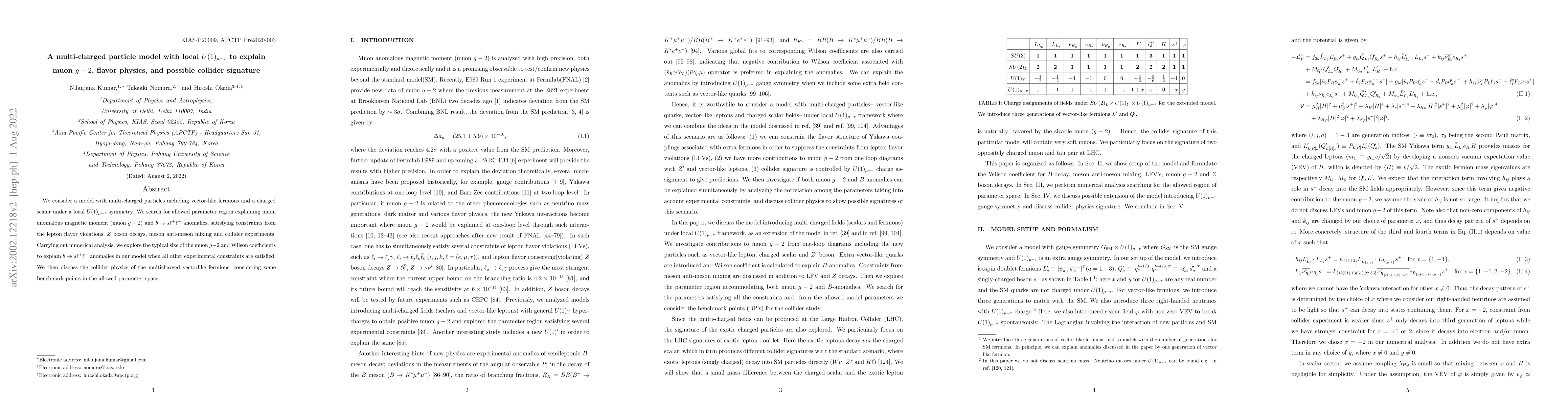 This paper explores a model with multi-charged particles, including vector-like fermions and a charged scalar under a local $U(1)_{\mu-\tau}$ symmetry, to explain the muon $g-2$ and $b \to s \ell^+ \ell^-$ anomalies, while satisfying various experimental constraints. The study also investigates the collider signatures of these multi-charged particles.