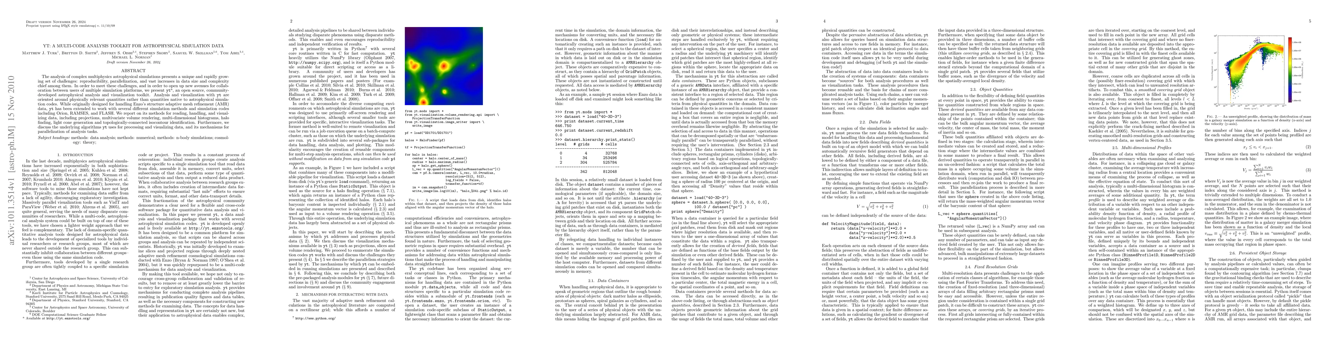 The paper introduces yt, an open-source astrophysical analysis toolkit designed to handle complex multiphysics simulation data, focusing on reproducibility and parallelization. yt supports multiple simulation codes and offers advanced visualization techniques for data analysis.
