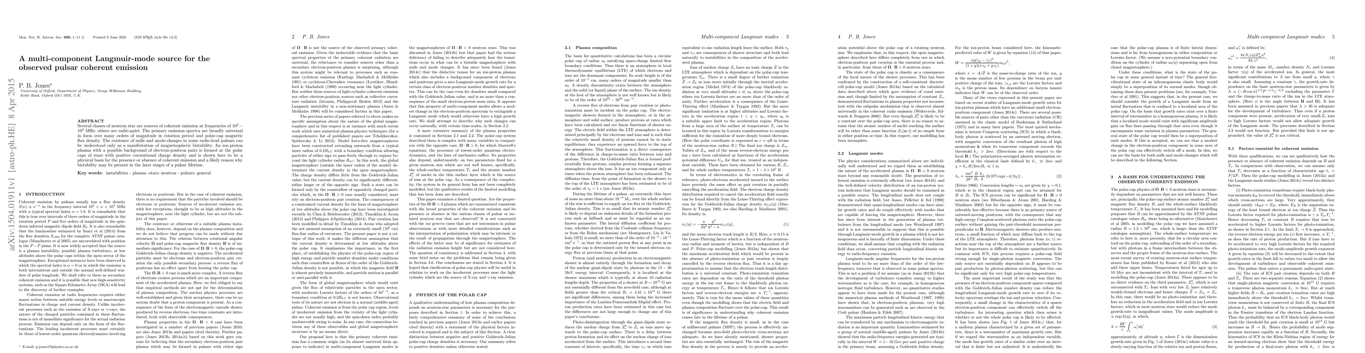 This paper explores the multi-component Langmuir-mode source for pulsar coherent emission, revealing that coherent emission is a universal feature across neutron stars. It explains the presence of nulls and mode-changes in radio-loud pulsars through magnetospherical bistability, attributing these phenomena to an ion-proton plasma at polar caps.
