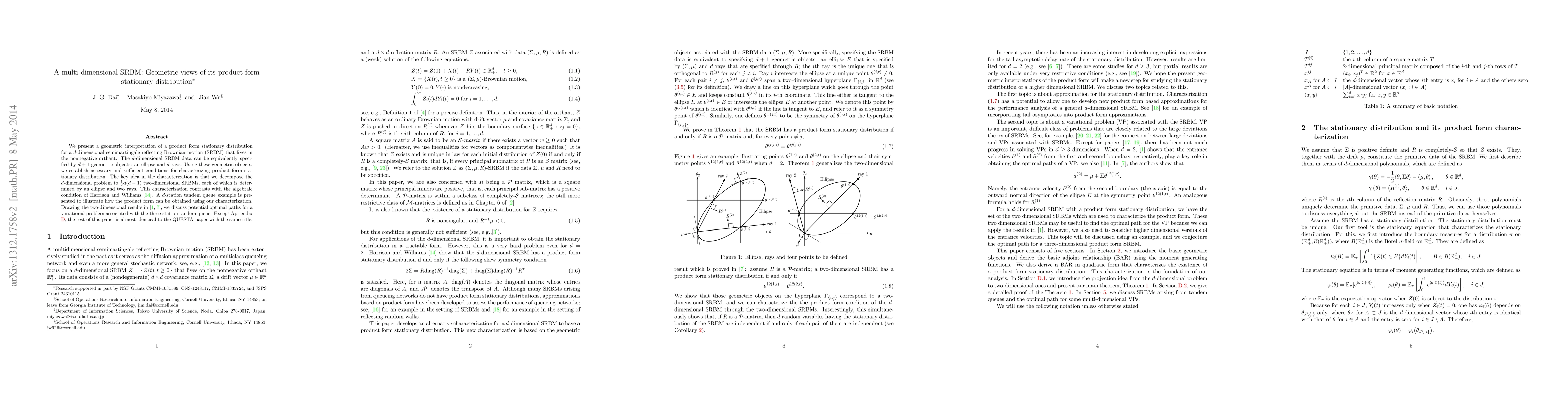 We present a geometric interpretation of a product form stationary distribution for a $d$-dimensional semimartingale reflecting Brownian motion (SRBM) that lives in the nonnegative orthant. The $d$-dimensional SRBM data can be equivalently specified by $d+1$ geometric objects: an ellipse and $d$ rays. Using these geometric objects, we establish necessary and sufficient conditions for characterizing product form stationary distribution. The key idea in the characterization is that we decompose the $d$-dimensional problem to $\frac{1}{2}d(d-1)$ two-dimensional SRBMs, each of which is determined by an ellipse and two rays. This characterization contrasts with the algebraic condition of [14]. A $d$-station tandem queue example is presented to illustrate how the product form can be obtained using our characterization. Drawing the two-dimensional results in [1,7], we discuss potential optimal paths for a variational problem associated with the three-station tandem queue. Except Appendix D, the rest of this paper is almost identical to the QUESTA paper with the same title.