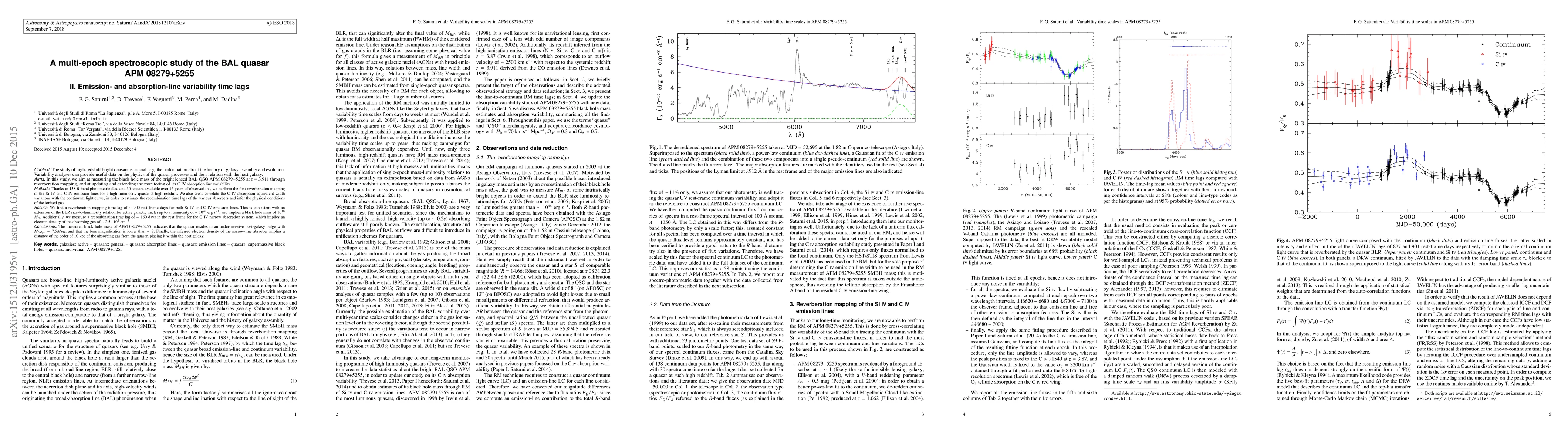 The study of high-redshift bright quasars is crucial to gather information about the history of galaxy assembly and evolution. Variability analyses can provide useful data on the physics of the quasar processes and their relation with the host galaxy. In this study, we aim at measuring the black hole mass of the bright lensed BAL QSO APM 08279+5255 at $z=3.911$ through reverberation mapping, and at updating and extending the monitoring of its C IV absorption line variability. Thanks to 138 R-band photometric data and 30 spectra available over 16 years of observations, we perform the first reverberation mapping of the Si IV and C IV emission lines for a high-luminosity quasar at high redshift. We also cross-correlate the C IV absorption equivalent width variations with the continuum light curve, in order to estimate the recombination time lags of the various absorbers and infer the physical conditions of the ionised gas. We find a reverberation-mapping time lag of $\sim 900$ rest-frame days for both Si IV and C IV emission lines. This is consistent with an extension of the BLR size-to-luminosity relation for active galactic nuclei up to a luminosity of $\sim 10^{48}$ erg/s, and implies a black hole mass of $10^{10}$ $M_\odot$. Additionally, we measure a recombination time lag of $\sim 160$ days in the rest frame for the C IV narrow absorption system, which implies an electron density of the absorbing gas of $\sim 2.5 \cdot 10^4$ cm$^{-3}$. The measured black hole mass of APM 08279+5255 indicates that the quasar resides in an under-massive host-galaxy bulge with $M_{bulge} \sim 7.5 M_{BH}$, and that the lens magnification is lower than $\sim 8$. Finally, the inferred electron density of the narrow-line absorber implies a distance of the order of 10 kpc of the absorbing gas from the quasar, placing it within the host galaxy.