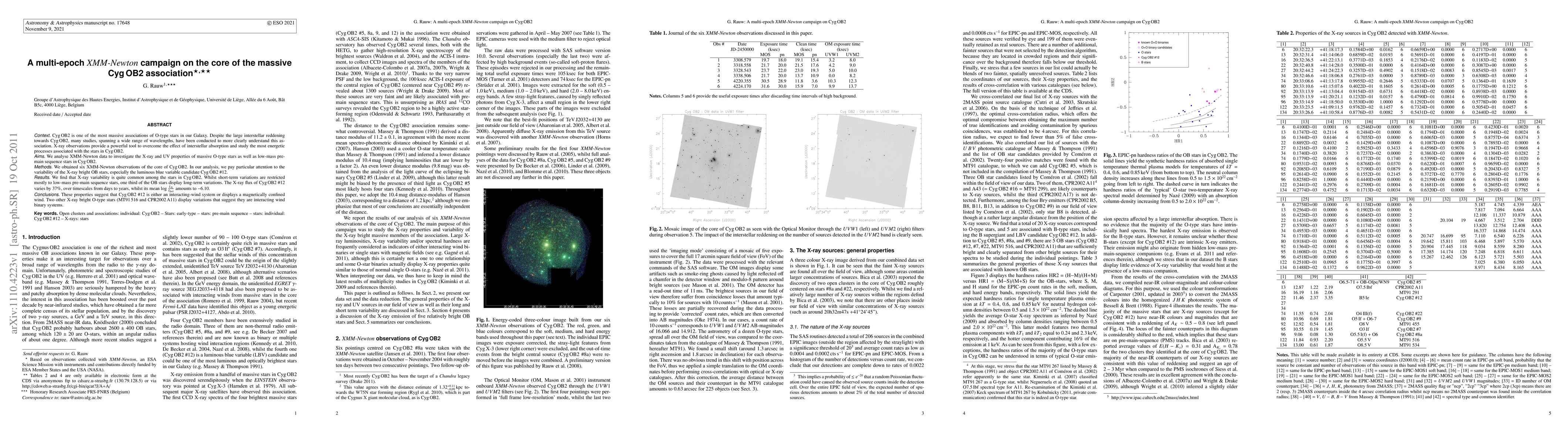 This study uses multi-epoch XMM-Newton observations to analyze the X-ray and UV properties of stars in the massive Cyg OB2 association, revealing significant X-ray variability among OB stars, particularly in the luminous blue variable candidate Cyg OB2 #12, suggesting it may be an interacting-wind system or exhibit a magnetically confined wind.