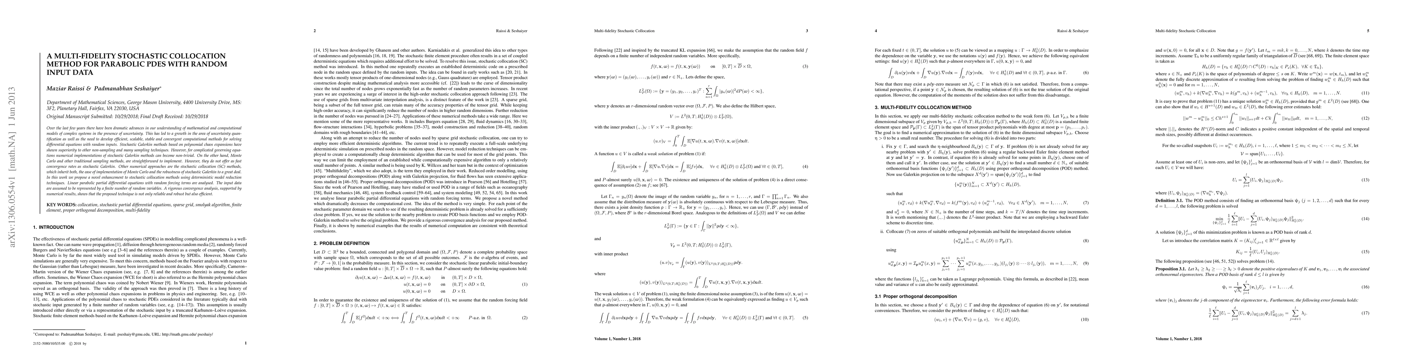 This paper proposes a multi-fidelity stochastic collocation method for solving linear parabolic PDEs with random inputs, combining the ease of Monte Carlo methods with the convergence rates of stochastic Galerkin methods. The method employs deterministic model reduction techniques and demonstrates efficiency, reliability, and robustness through rigorous convergence analysis and numerical results.