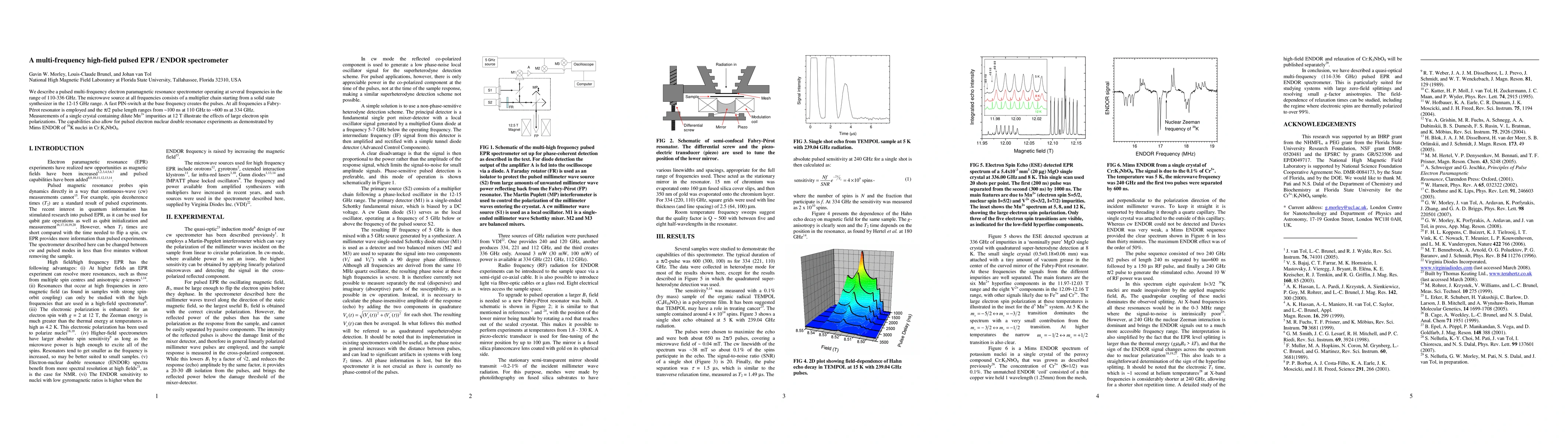 This paper introduces a versatile pulsed multi-frequency electron paramagnetic resonance spectrometer operating from 110-336 GHz, utilizing a solid-state synthesizer and a Fabry-Perot resonator. It demonstrates the system's effectiveness through experiments on Mn2+ impurities and pulsed electron nuclear double resonance on Cr:K3NbO8 crystals.