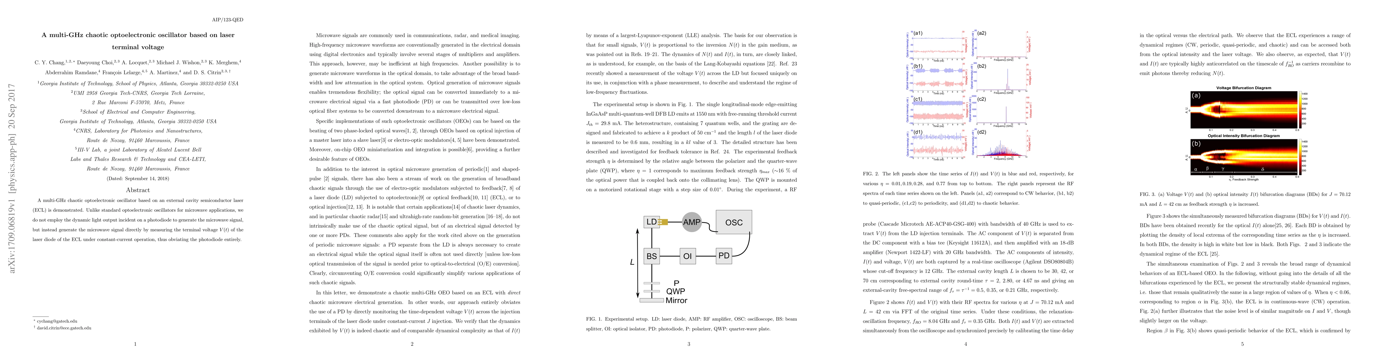 This research demonstrates a multi-GHz chaotic optoelectronic oscillator using an external cavity semiconductor laser, generating microwave signals directly from the laser diode's terminal voltage instead of relying on a photodiode, thus simplifying the setup.