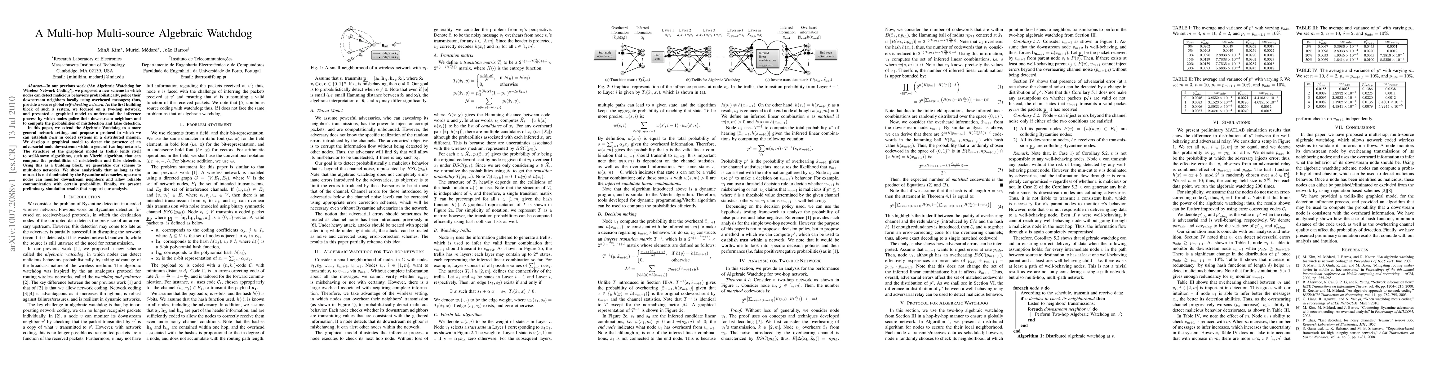 In our previous work "An Algebraic Watchdog for Wireless Network Coding", we proposed a new scheme in which nodes can detect malicious behaviors probabilistically, police their downstream neighbors locally using overheard messages; thus, provide a secure global "self-checking network". As the first building block of such a system, we focused on a two-hop network, and presented a graphical model to understand the inference process by which nodes police their downstream neighbors and to compute the probabilities of misdetection and false detection. In this paper, we extend the Algebraic Watchdog to a more general network setting, and propose a protocol in which we can establish "trust" in coded systems in a distributed manner. We develop a graphical model to detect the presence of an adversarial node downstream within a general two-hop network. The structure of the graphical model (a trellis) lends itself to well-known algorithms, such as Viterbi algorithm, that can compute the probabilities of misdetection and false detection. Using this as a building block, we generalize our scheme to multi-hop networks. We show analytically that as long as the min-cut is not dominated by the Byzantine adversaries, upstream nodes can monitor downstream neighbors and allow reliable communication with certain probability. Finally, we present preliminary simulation results that support our analysis.