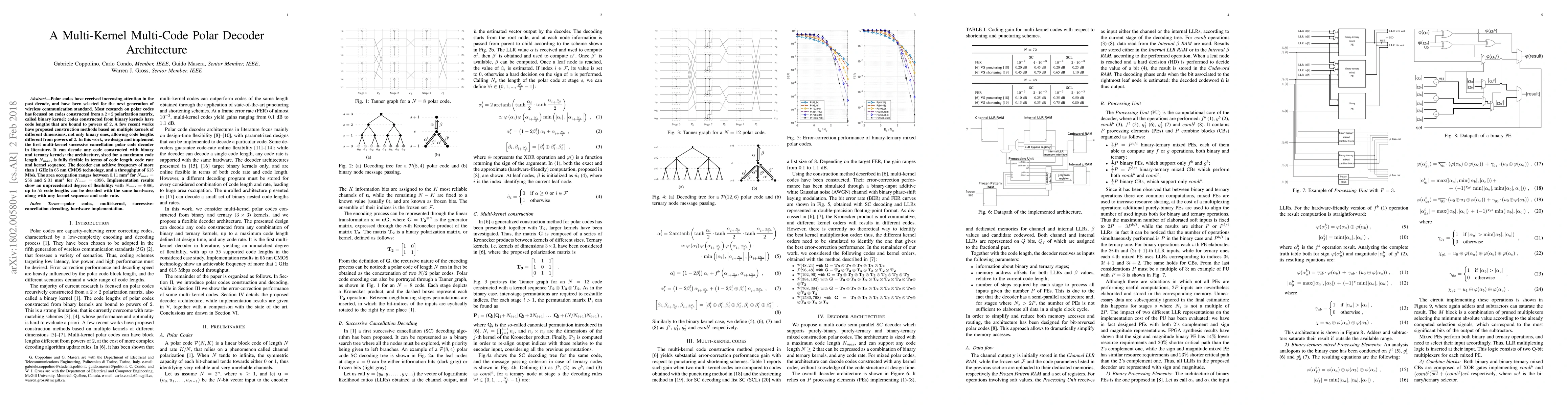 The paper presents a novel multi-kernel polar decoder architecture that supports flexible code lengths, rates, and kernel orders, enabling efficient decoding of a wide range of polar codes.