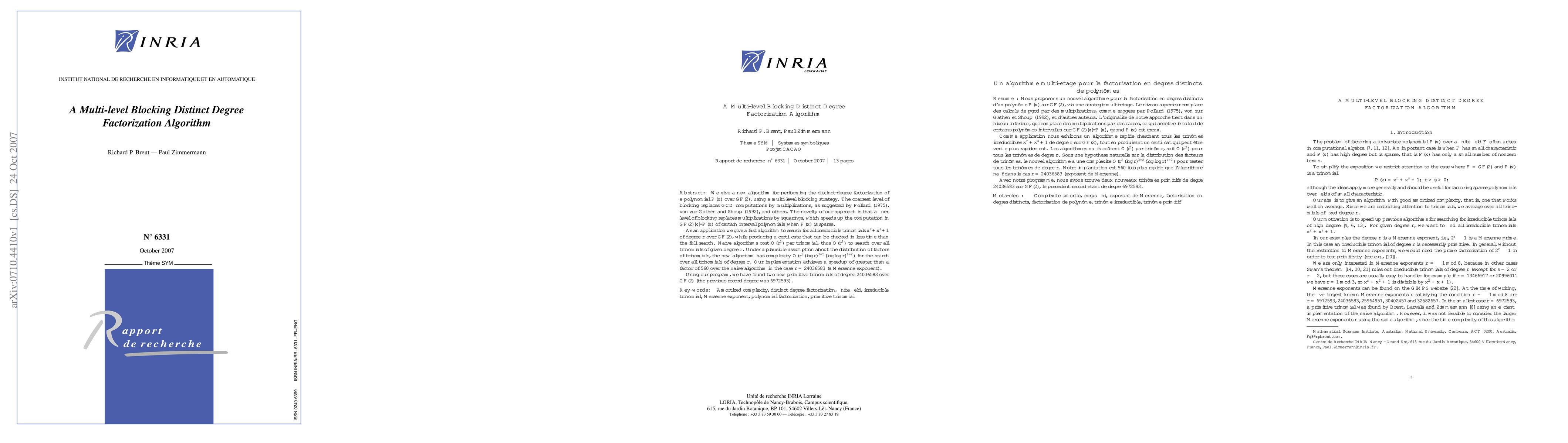We give a new algorithm for performing the distinct-degree factorization of a polynomial P(x) over GF(2), using a multi-level blocking strategy. The coarsest level of blocking replaces GCD computations by multiplications, as suggested by Pollard (1975), von zur Gathen and Shoup (1992), and others. The novelty of our approach is that a finer level of blocking replaces multiplications by squarings, which speeds up the computation in GF(2)[x]/P(x) of certain interval polynomials when P(x) is sparse. As an application we give a fast algorithm to search for all irreducible trinomials x^r + x^s + 1 of degree r over GF(2), while producing a certificate that can be checked in less time than the full search. Naive algorithms cost O(r^2) per trinomial, thus O(r^3) to search over all trinomials of given degree r. Under a plausible assumption about the distribution of factors of trinomials, the new algorithm has complexity O(r^2 (log r)^{3/2}(log log r)^{1/2}) for the search over all trinomials of degree r. Our implementation achieves a speedup of greater than a factor of 560 over the naive algorithm in the case r = 24036583 (a Mersenne exponent). Using our program, we have found two new primitive trinomials of degree 24036583 over GF(2) (the previous record degree was 6972593).