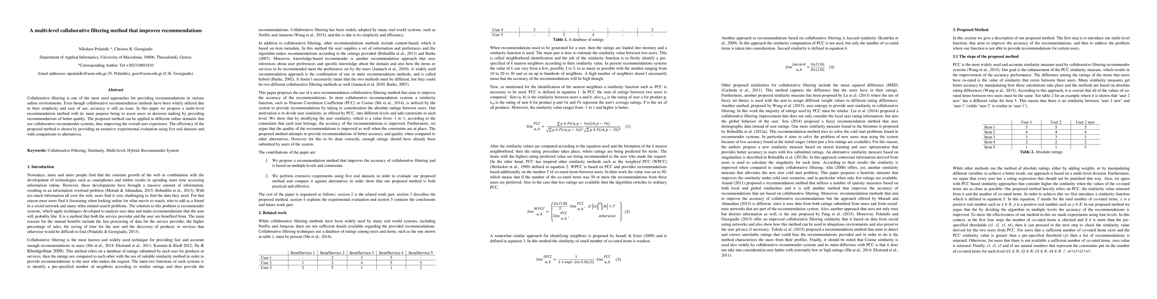 This paper proposes a multi-level collaborative filtering method to enhance recommendation accuracy, aiming to improve user decision-making and overall user experience. Experimental evaluations on five real datasets demonstrate its efficiency and effectiveness compared to existing alternatives.