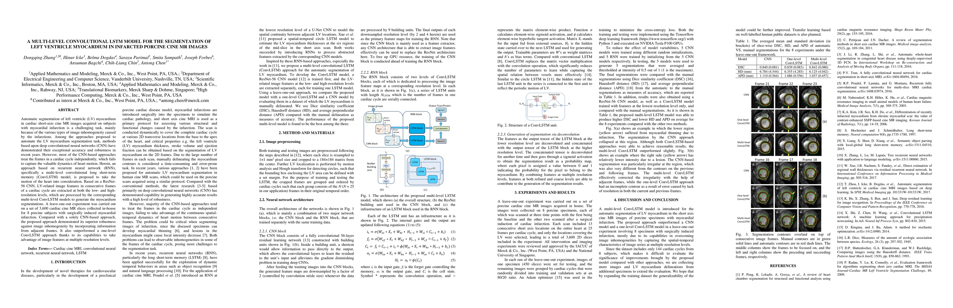 This paper proposes a multi-level convolutional LSTM (ConvLSTM) model for segmenting left ventricle myocardium in infarcted porcine cine MR images, leveraging both low- and high-resolution features extracted from a ResNet-56 CNN. The model outperforms traditional CNN-based methods and single-level ConvLSTM approaches by capturing the dynamics of heart motion across consecutive frames.