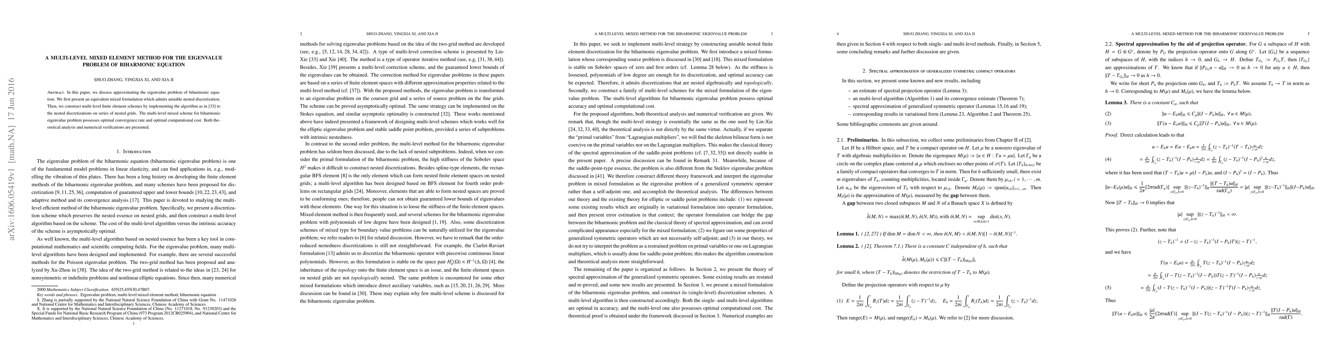 This paper proposes a multi-level mixed element method for solving the eigenvalue problem of the biharmonic equation, achieving optimal convergence and computational efficiency through nested discretizations and multi-level finite element schemes. Theoretical and numerical results confirm the method's effectiveness.