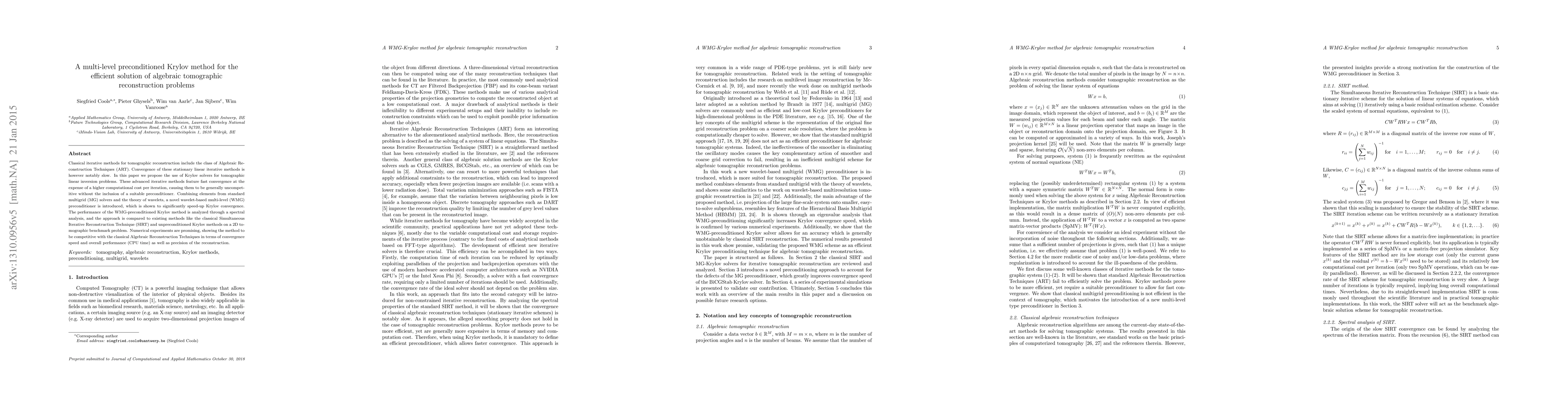 A new method combining Krylov solvers with a wavelet-based multi-level preconditioner significantly speeds up tomographic reconstruction problems, rivaling the performance of existing Algebraic Reconstruction Techniques.