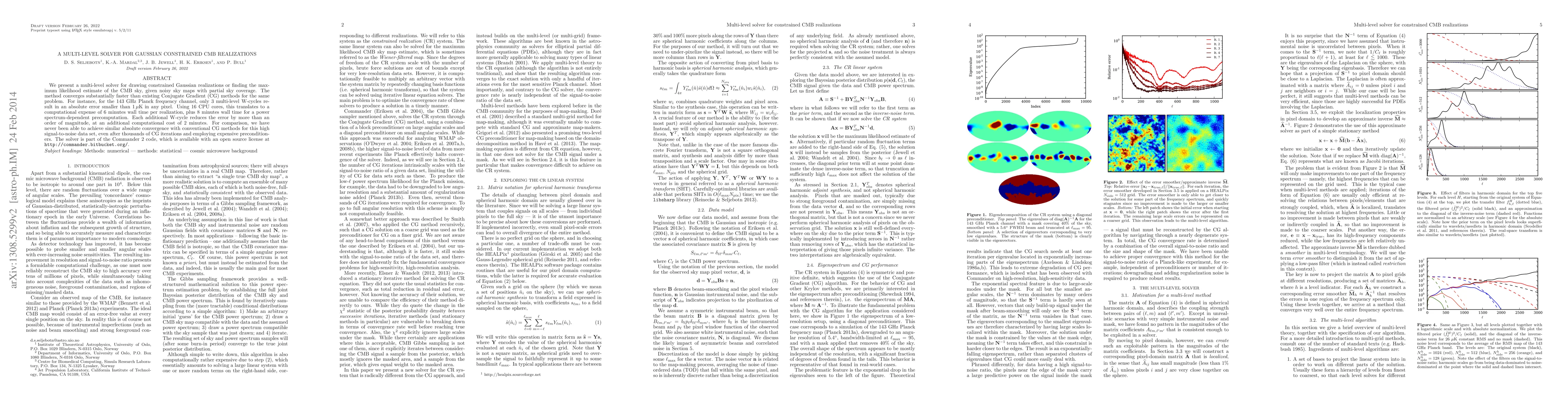 We present a multi-level solver for drawing constrained Gaussian realizations or finding the maximum likelihood estimate of the CMB sky, given noisy sky maps with partial sky coverage. The method converges substantially faster than existing Conjugate Gradient (CG) methods for the same problem. For instance, for the 143 GHz Planck frequency channel, only 3 multi-level W-cycles result in an absolute error smaller than 1 microKelvin in any pixel. Using 16 CPU cores, this translates to a computational expense of 6 minutes wall time per realization, plus 8 minutes wall time for a power spectrum-dependent precomputation. Each additional W-cycle reduces the error by more than an order of magnitude, at an additional computational cost of 2 minutes. For comparison, we have never been able to achieve similar absolute convergence with conventional CG methods for this high signal-to-noise data set, even after thousands of CG iterations and employing expensive preconditioners. The solver is part of the Commander 2 code, which is available with an open source license at http://commander.bitbucket.org/.