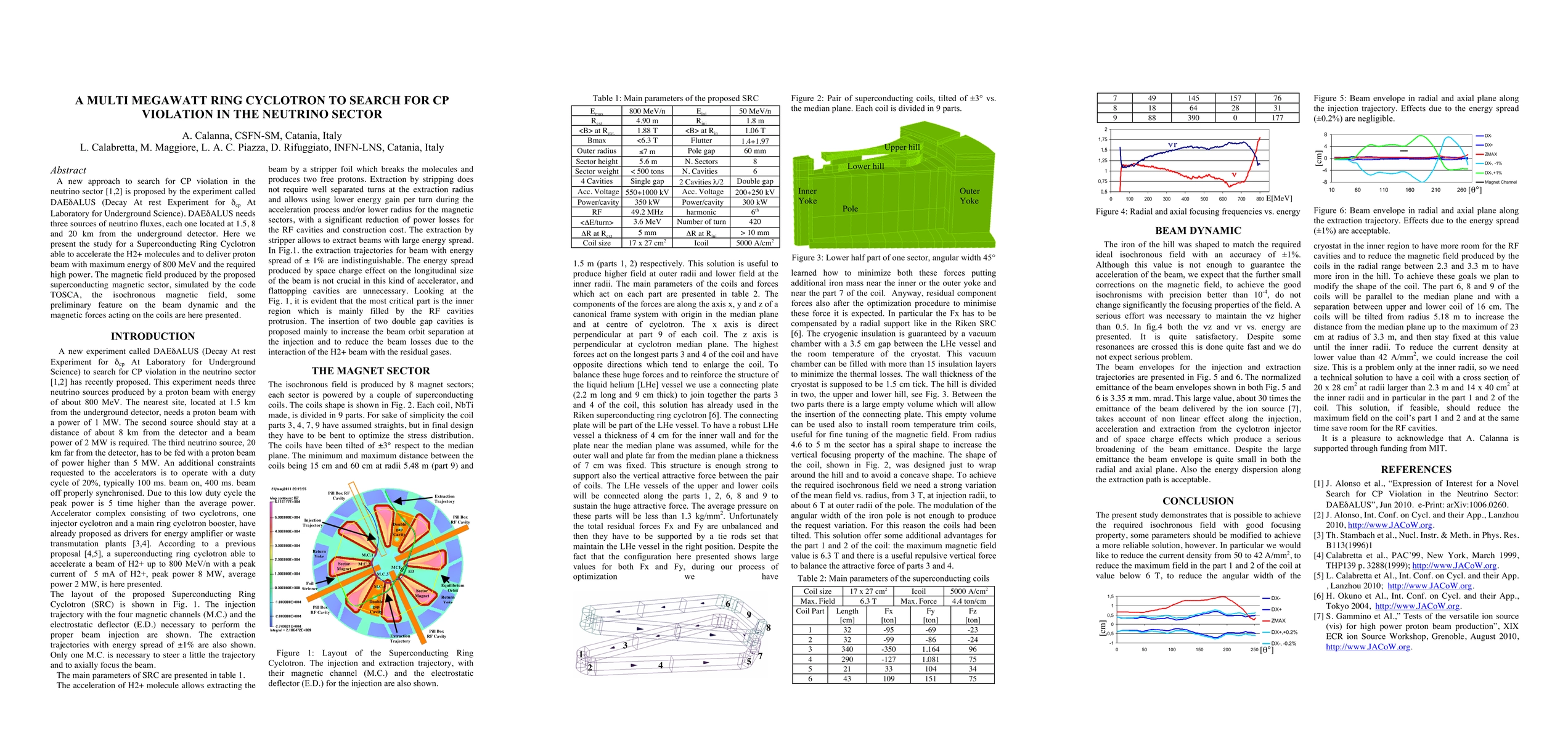 This paper proposes a new cyclotron design to search for CP violation in the neutrino sector via the DAEδALUS experiment, requiring a superconducting ring cyclotron to deliver high-power proton beams at 800 MeV. The study details the magnetic field configuration and beam dynamics for the cyclotron.