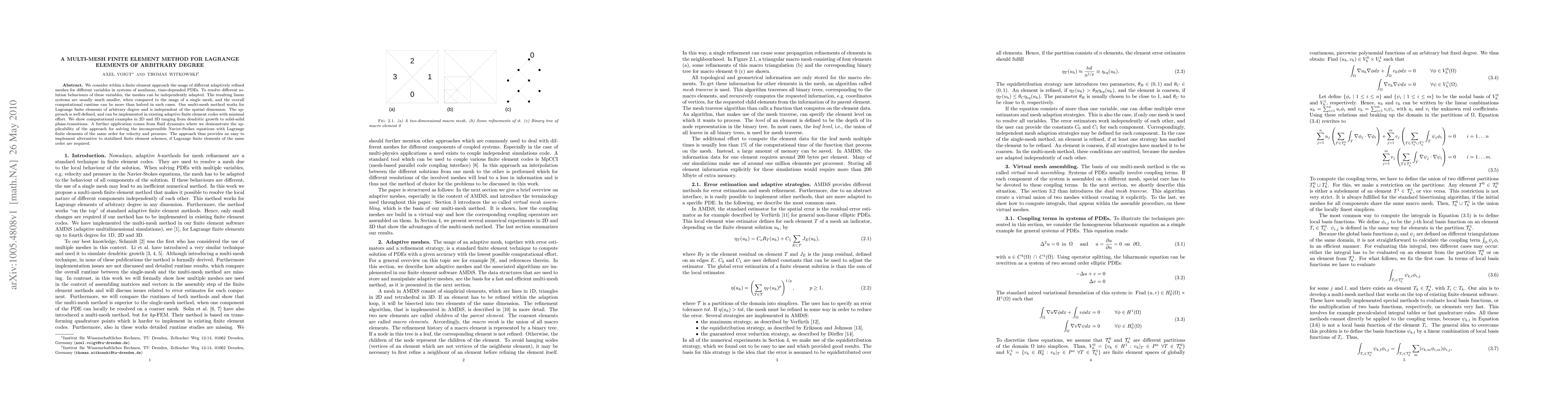 A multi-mesh adaptive finite element method was used to solve phase field simulations.