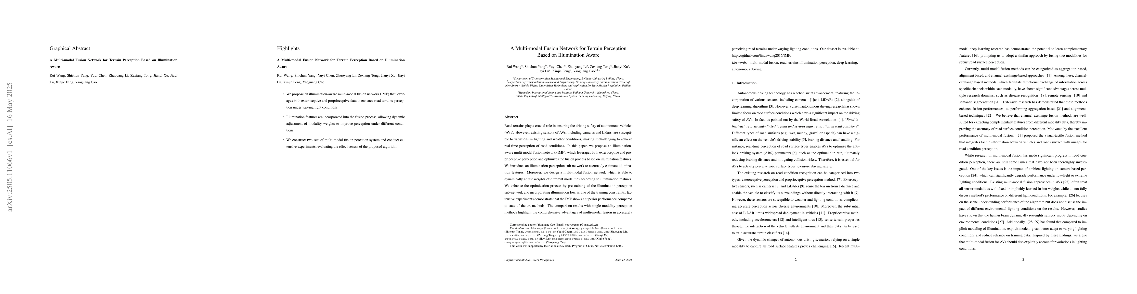 A new method called Illumination Aware Multi-modal Fusion Network (IMF) is proposed to improve terrain perception for autonomous vehicles by leveraging both camera and lidar data, with a focus on handling varying lighting conditions.