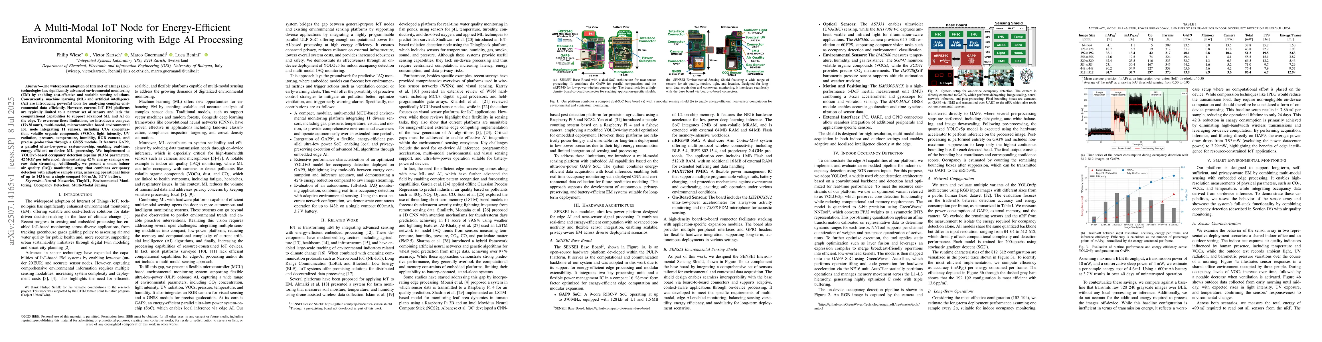 The widespread adoption of Internet of Things (IoT) technologies has significantly advanced environmental monitoring (EM) by enabling cost-effective and scalable sensing solutions. Concurrently, machine learning (ML) and artificial intelligence (AI) are introducing powerful tools for the efficient and accurate analysis of complex environmental data. However, current IoT platforms for environmental sensing are typically limited to a narrow set of sensors, preventing a comprehensive assessment of environmental conditions and lacking sufficient computational capabilities to support the deployment of advanced ML and AI algorithms on the edge. To overcome these limitations, we introduce a compact (17x38 mm2), multi-modal, MCU-based environmental IoT node integrating 11 sensors, including CO2 concentration, volatile organic compounds (VOCs), light intensity, UV radiation, pressure, temperature, humidity, visual sensing via an RGB camera, and precise geolocation through a GNSS module. It features GAP9, a parallel ultra-low-power system-on-chip, enabling real-time, energy-efficient edge processing of advanced ML models directly on-device. We implemented a YOLOv5-based occupancy detection pipeline (0.3 M parameters, 42 MOP per inference), demonstrating 42% energy savings over raw data streaming. Additionally, we present a smart indoor air quality (IAQ) monitoring setup that combines occupancy detection with adaptive sample rates, achieving operational times of up to 143 h on a single compact 600 mAh, 3.7 V battery. Our platform lays the groundwork for innovative applications such as predictive indoor IAQ, enabling efficient AI-driven on-edge forecasting for energy-efficient and autonomous, proactive pollution-mitigation control strategies
