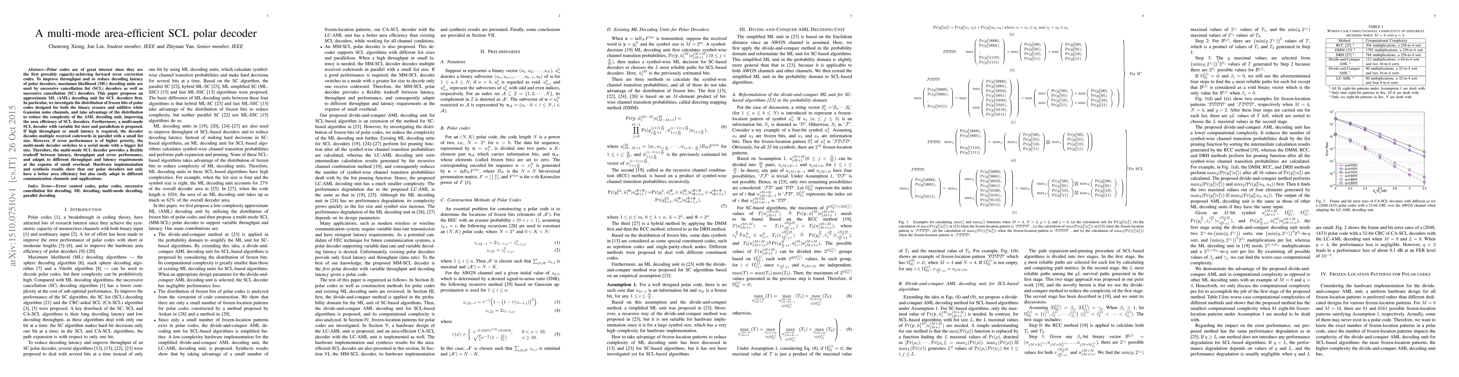 This paper proposes an area-efficient multi-mode SCL polar decoder that employs an approximate ML decoding unit to reduce complexity and improve efficiency. The decoder adapts to varying throughput and latency requirements through variable list sizes and parallel processing, achieving a flexible tradeoff between latency, throughput, and error performance.