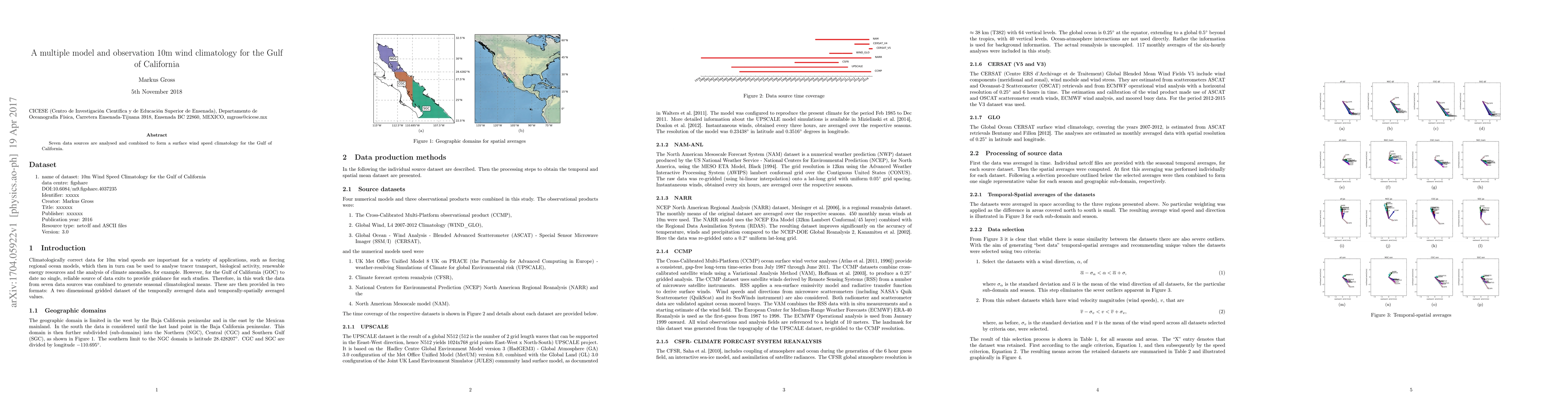 Seven data sources are analyzed and combined to form a surface wind speed climatology for the Gulf of California.