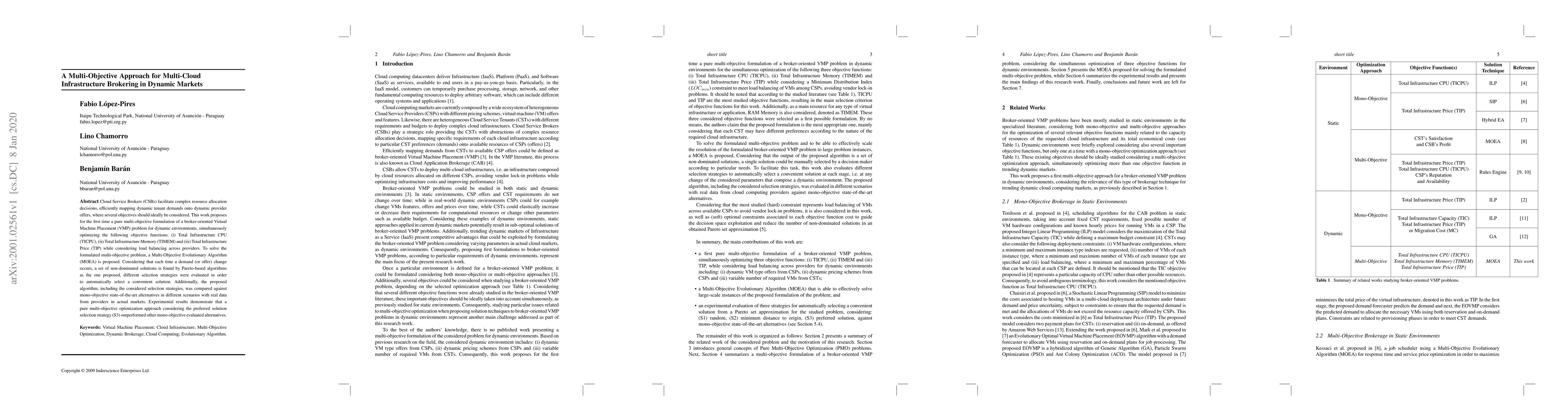 Cloud Service Brokers (CSBs) facilitate complex resource allocation decisions, efficiently mapping dynamic tenant demands onto dynamic provider offers, where several objectives should ideally be considered. This work proposes for the first time a pure multi-objective formulation of a broker-oriented Virtual Machine Placement (VMP) problem for dynamic environments, simultaneously optimizing the following objective functions: (i) Total Infrastructure CPU (TICPU), (ii) Total Infrastructure Memory (TIMEM) and (iii) Total Infrastructure Price (TIP) while considering load balancing across providers. To solve the formulated multi-objective problem, a Multi-Objective Evolutionary Algorithm (MOEA) is proposed. Considering that each time a demand (or offer) change occurs, a set of non-dominated solutions is found by Pareto-based algorithms as the one proposed, different selection strategies were evaluated in order to automatically select a convenient solution. Additionally, the proposed algorithm, including the considered selection strategies, was compared against mono-objective state-of-the-art alternatives in different scenarios with real data from providers in actual markets. Experimental results demonstrate that a pure multi-objective optimization approach considering the preferred solution selection strategy (S3) outperformed other mono-objective evaluated alternatives.