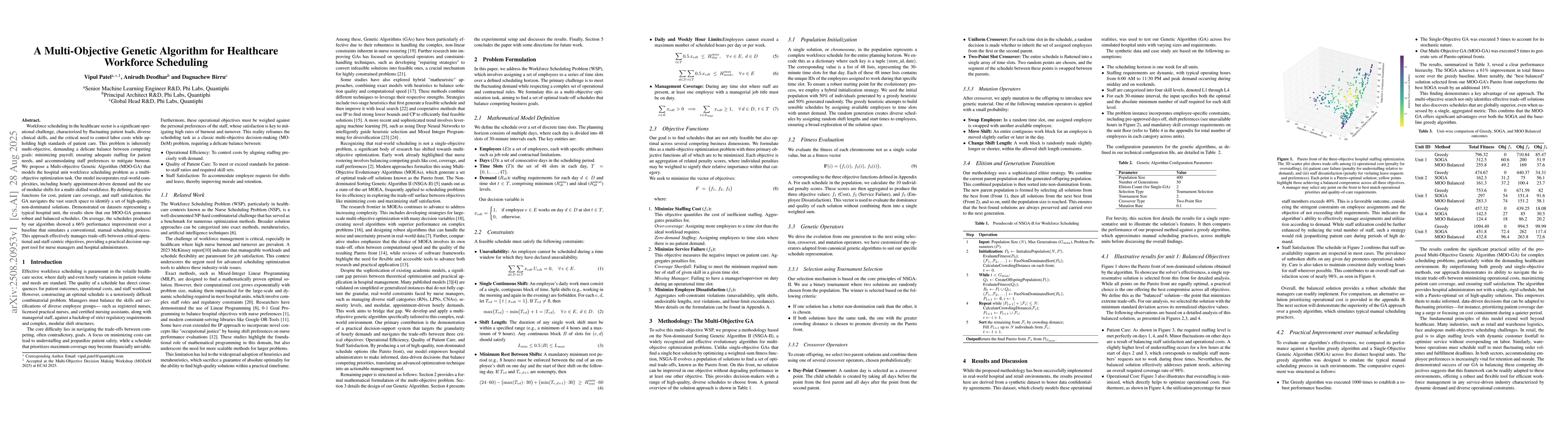 Workforce scheduling in the healthcare sector is a significant operational challenge, characterized by fluctuating patient loads, diverse clinical skills, and the critical need to control labor costs while upholding high standards of patient care. This problem is inherently multi-objective, demanding a delicate balance between competing goals: minimizing payroll, ensuring adequate staffing for patient needs, and accommodating staff preferences to mitigate burnout. We propose a Multi-objective Genetic Algorithm (MOO-GA) that models the hospital unit workforce scheduling problem as a multi-objective optimization task. Our model incorporates real-world complexities, including hourly appointment-driven demand and the use of modular shifts for a multi-skilled workforce. By defining objective functions for cost, patient care coverage, and staff satisfaction, the GA navigates the vast search space to identify a set of high-quality, non-dominated solutions. Demonstrated on datasets representing a typical hospital unit, the results show that our MOO-GA generates robust and balanced schedules. On average, the schedules produced by our algorithm showed a 66\% performance improvement over a baseline that simulates a conventional, manual scheduling process. This approach effectively manages trade-offs between critical operational and staff-centric objectives, providing a practical decision support tool for nurse managers and hospital administrators.