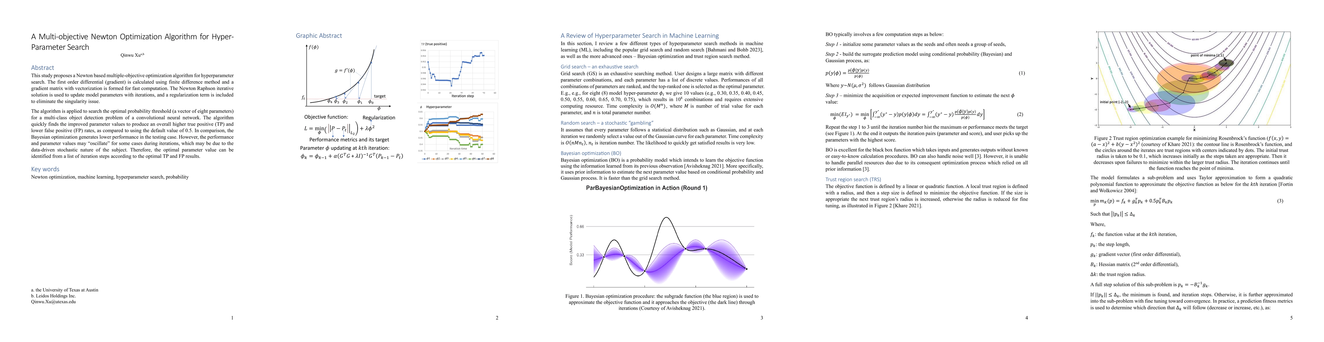 This study proposes a Newton based multiple objective optimization algorithm for hyperparameter search. The first order differential (gradient) is calculated using finite difference method and a gradient matrix with vectorization is formed for fast computation. The Newton Raphson iterative solution is used to update model parameters with iterations, and a regularization term is included to eliminate the singularity issue. The algorithm is applied to search the optimal probability threshold (a vector of eight parameters) for a multiclass object detection problem of a convolutional neural network. The algorithm quickly finds the improved parameter values to produce an overall higher true positive (TP) and lower false positive (FP) rates, as compared to using the default value of 0.5. In comparison, the Bayesian optimization generates lower performance in the testing case. However, the performance and parameter values may oscillate for some cases during iterations, which may be due to the data driven stochastic nature of the subject. Therefore, the optimal parameter value can be identified from a list of iteration steps according to the optimal TP and FP results.