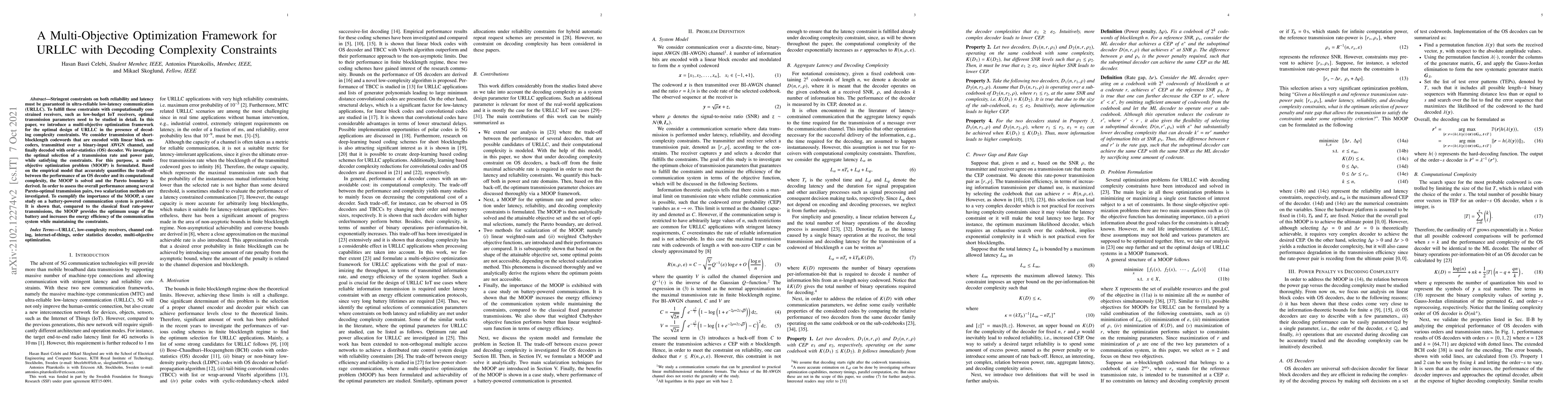 Stringent constraints on both reliability and latency must be guaranteed in ultra-reliable low-latency communication (URLLC). To fulfill these constraints with computationally constrained receivers, such as low-budget IoT receivers, optimal transmission parameters need to be studied in detail. In this paper, we introduce a multi-objective optimization framework for the optimal design of URLLC in the presence of decoding complexity constraints. We consider transmission of short-blocklength codewords that are encoded with linear block encoders, transmitted over a binary-input AWGN channel, and finally decoded with order-statistics (OS) decoder. We investigate the optimal selection of a transmission rate and power pair, while satisfying the constraints. For this purpose, a multi-objective optimization problem (MOOP) is formulated. Based on the empirical model that accurately quantifies the trade-off between the performance of an OS decoder and its computational complexity, the MOOP is solved and the Pareto boundary is derived. In order to assess the overall performance among several Pareto-optimal transmission pairs, two scalarization methods are investigated. To exemplify the importance of the MOOP, a case study on a battery-powered communication system is provided. It is shown that, compared to the classical fixed rate-power transmissions, the MOOP provides the optimum usage of the battery and increases the energy efficiency of the communication system while maintaining the constraints.
