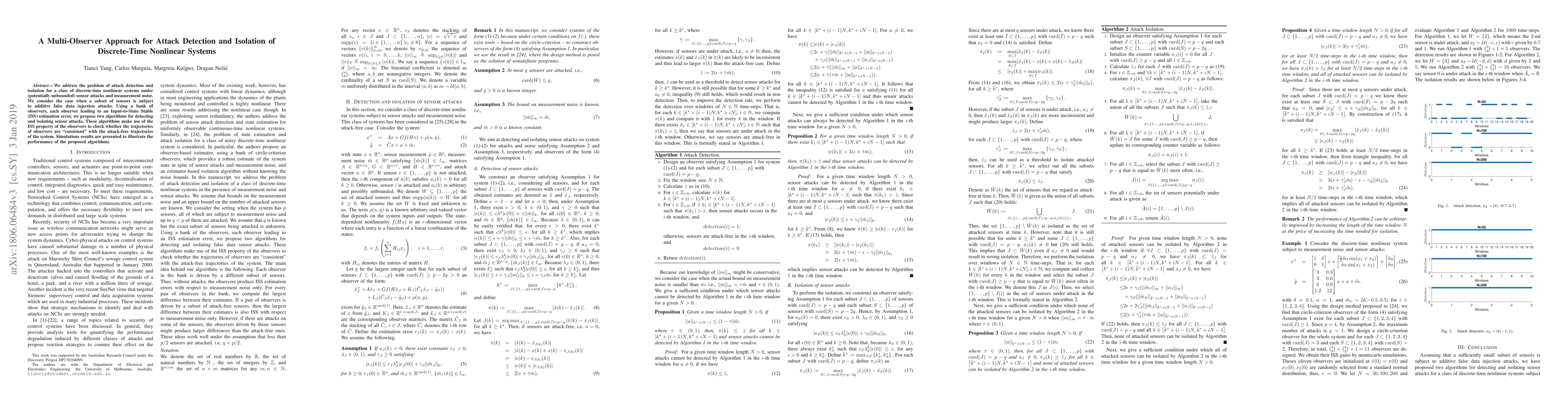 This paper proposes a multi-observer approach for detecting and isolating sensor attacks in discrete-time nonlinear systems. It utilizes Input-to-State Stable (ISS) observers to determine if sensor trajectories are consistent with attack-free system behavior, presenting simulation results to demonstrate effectiveness.