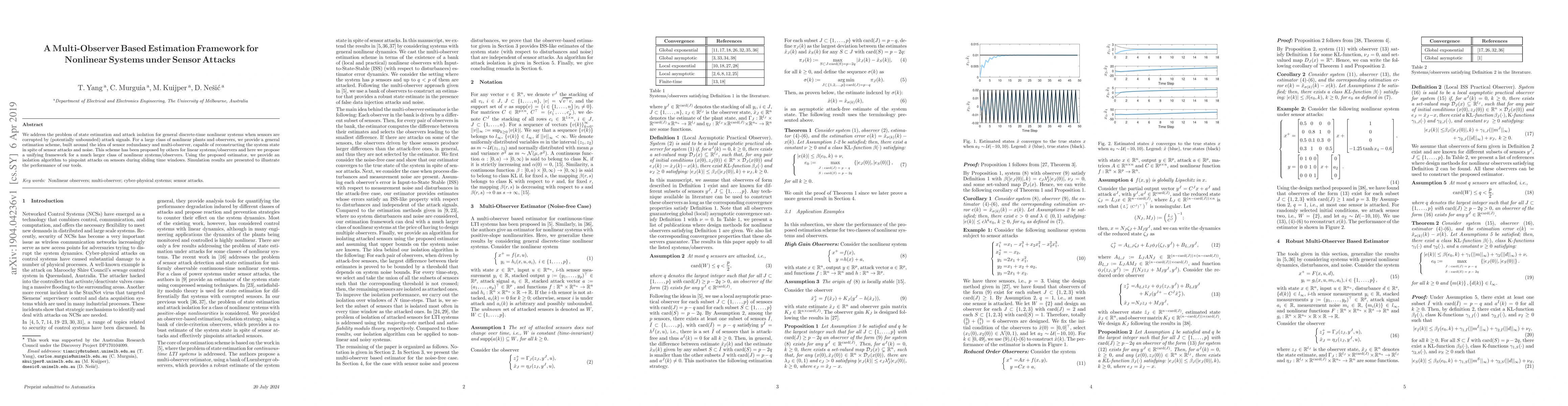 This paper proposes a multi-observer estimation framework for nonlinear systems to accurately reconstruct state despite sensor attacks and noise. It introduces an isolation algorithm to detect sensor attacks in sliding time windows, extending previous linear system methods to a broader class of nonlinear systems.