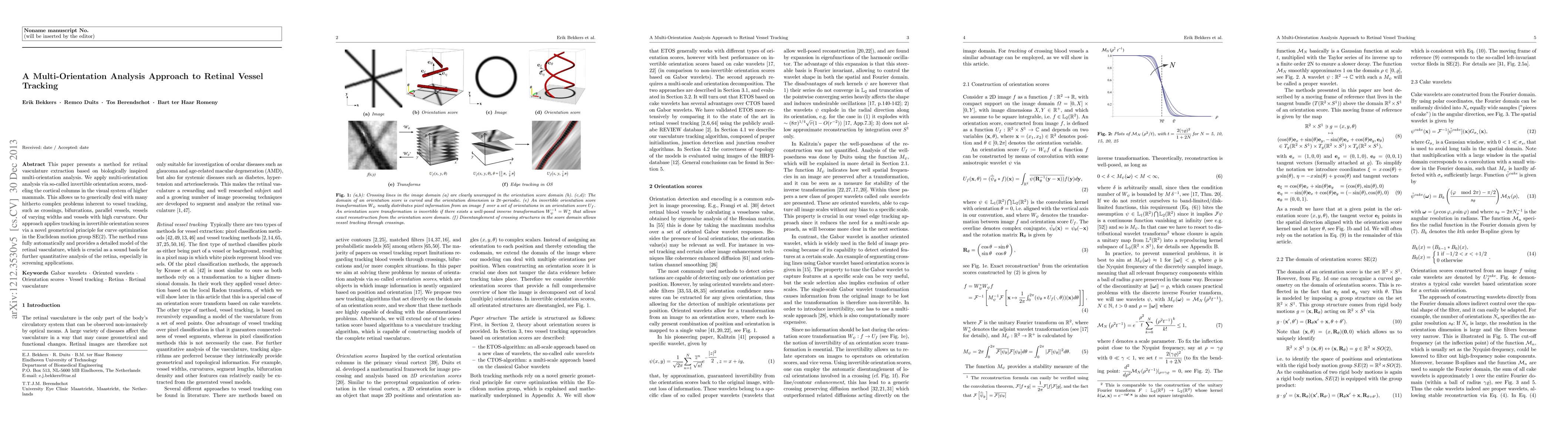 This paper introduces an automated method for retinal vessel tracking using biologically inspired multi-orientation analysis, which effectively handles complex vessel features like crossings and varying widths. The approach leverages invertible orientation scores and a novel curve optimization principle for precise vasculature modeling.