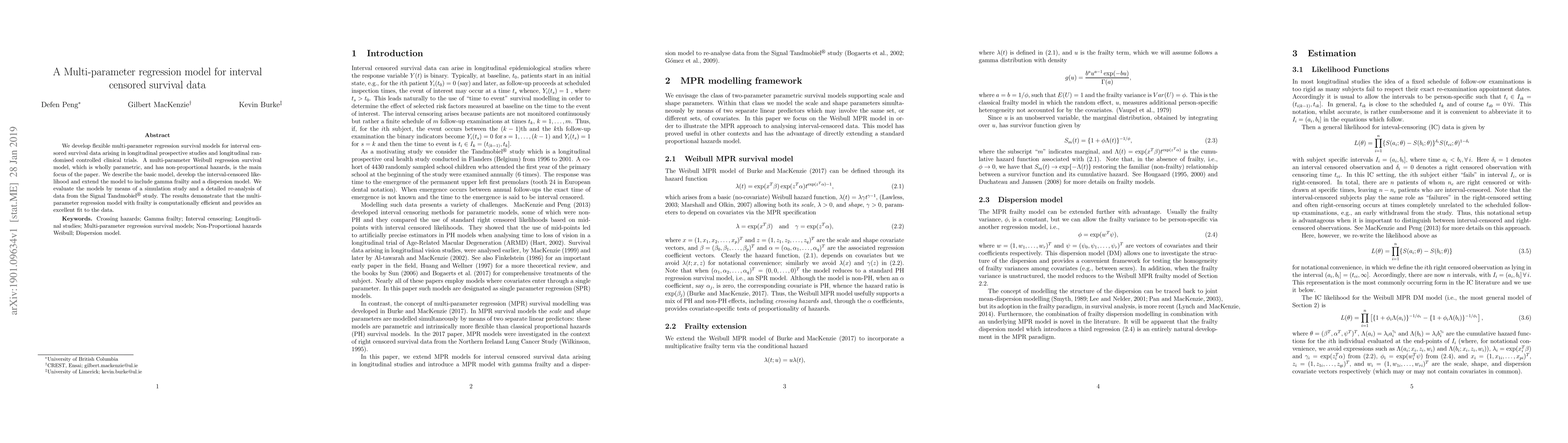 We develop flexible multi-parameter regression survival models for interval censored survival data arising in longitudinal prospective studies and longitudinal randomised controlled clinical trials. A multi-parameter Weibull regression survival model, which is wholly parametric, and has non-proportional hazards, is the main focus of the paper. We describe the basic model, develop the interval-censored likelihood and extend the model to include gamma frailty and a dispersion model. We evaluate the models by means of a simulation study and a detailed re-analysis of data from the Signal Tandmobiel$^{\circledR}$ study. The results demonstrate that the multi-parameter regression model with frailty is computationally efficient and provides an excellent fit to the data.