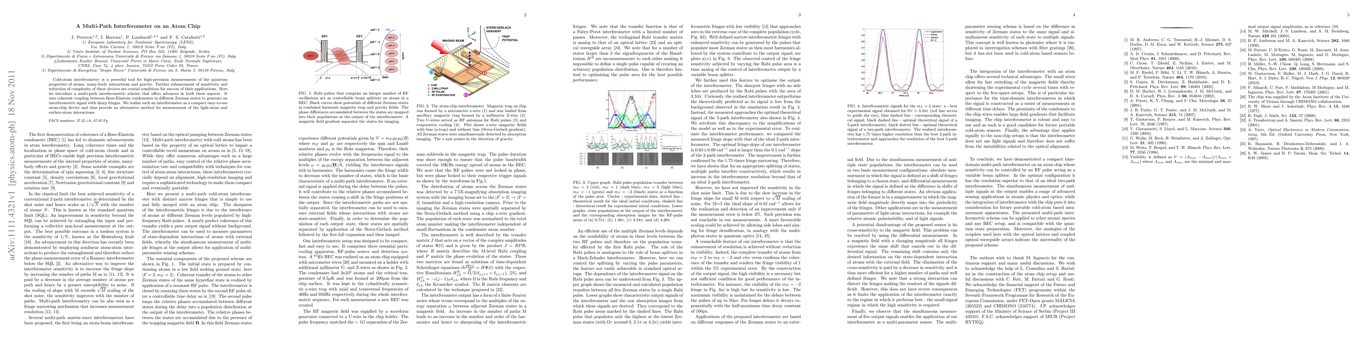 This paper introduces a multi-path interferometer on an atom chip that enhances sensitivity and reduces complexity for high-precision measurements of quantum properties and gravity. The device uses coherent coupling between Bose-Einstein condensates to generate sharp interferometric fringes, offering a compact and efficient alternative for studying light-atom and surface-atom interactions.