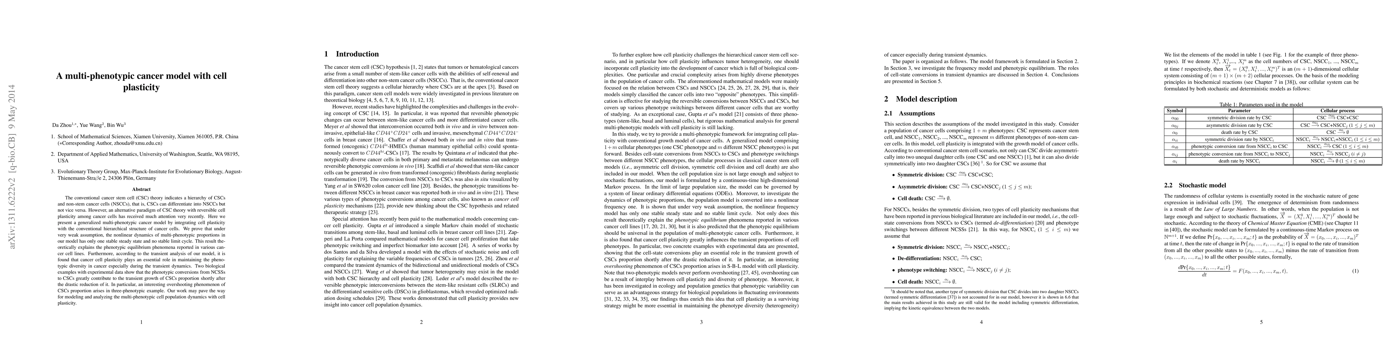 This paper presents a multi-phenotypic cancer model incorporating reversible cell plasticity, demonstrating that it has a single stable equilibrium and no stable limit cycles. The model highlights the role of cancer cell plasticity in maintaining phenotypic diversity and transient dynamics, with experimental data showing significant conversions from non-stem to stem cancer cells.