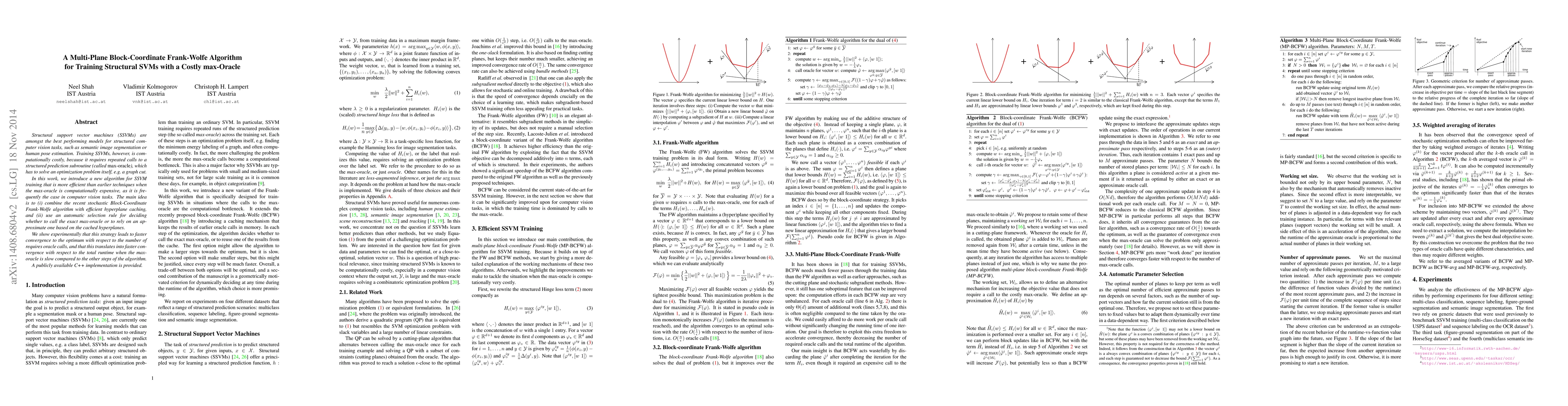 Structural support vector machines (SSVMs) are amongst the best performing models for structured computer vision tasks, such as semantic image segmentation or human pose estimation. Training SSVMs, however, is computationally costly, because it requires repeated calls to a structured prediction subroutine (called \emph{max-oracle}), which has to solve an optimization problem itself, e.g. a graph cut. In this work, we introduce a new algorithm for SSVM training that is more efficient than earlier techniques when the max-oracle is computationally expensive, as it is frequently the case in computer vision tasks. The main idea is to (i) combine the recent stochastic Block-Coordinate Frank-Wolfe algorithm with efficient hyperplane caching, and (ii) use an automatic selection rule for deciding whether to call the exact max-oracle or to rely on an approximate one based on the cached hyperplanes. We show experimentally that this strategy leads to faster convergence to the optimum with respect to the number of requires oracle calls, and that this translates into faster convergence with respect to the total runtime when the max-oracle is slow compared to the other steps of the algorithm. A publicly available C++ implementation is provided at http://pub.ist.ac.at/~vnk/papers/SVM.html .
