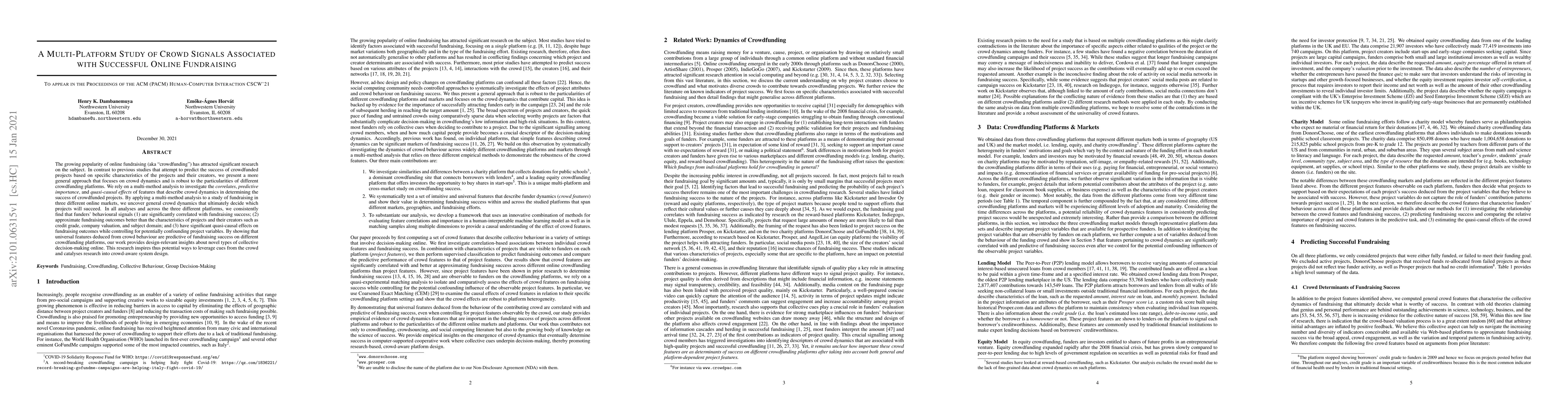 This study investigates crowd dynamics across three crowdfunding platforms to determine their impact on fundraising success. It finds that funders' behavioral signals are more predictive of success than project-specific characteristics, highlighting the importance of collective decision-making in online fundraising.