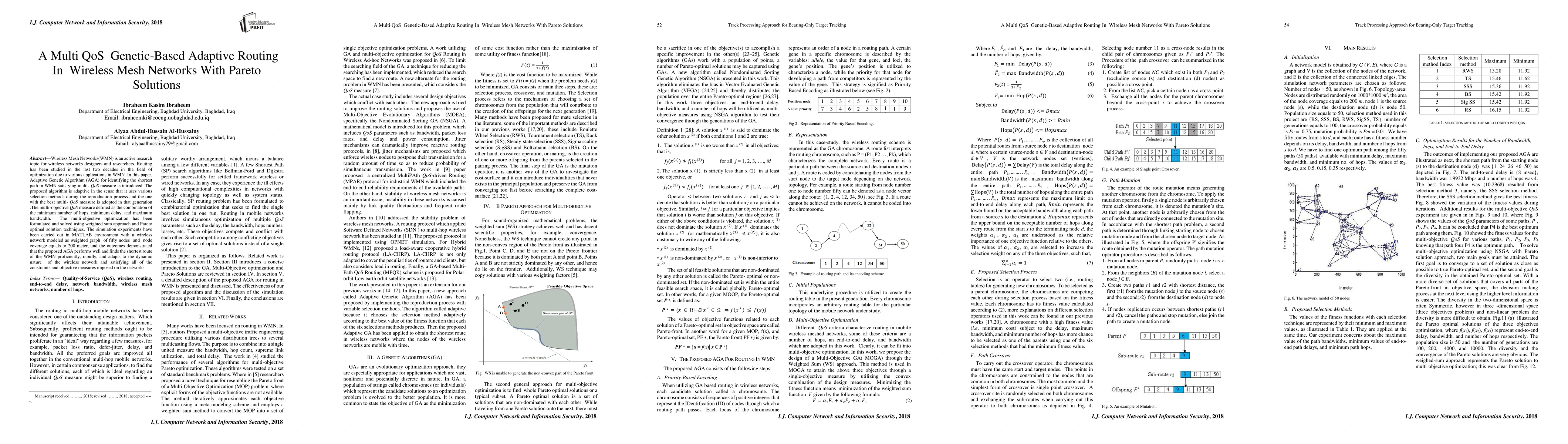 This paper introduces an Adaptive Genetic Algorithm (AGA) for multi-QoS adaptive routing in Wireless Mesh Networks (WMN), optimizing for minimum hops, delay, and bandwidth. The algorithm employs Pareto optimal solutions and demonstrates effective performance in dynamic network conditions through MATLAB simulations.
